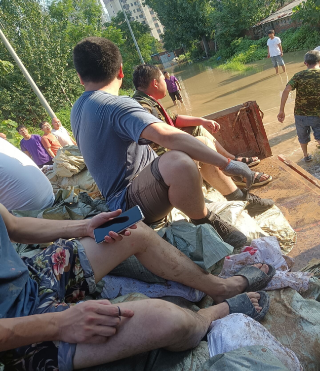 7月24日一早,在看到卫河水倒灌,新乡岌岌可危的消息后,他来不及好好休息,又自发来到新乡市劳动桥附近的北关街参与救援。在众人的共同努力下,当晚便控制住了险情。
