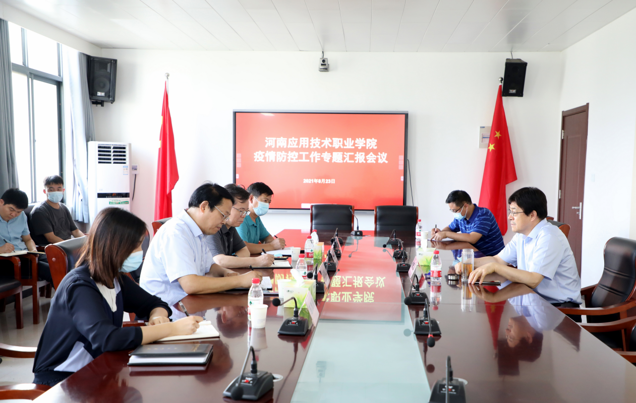 陈雅莉、刘振民分别汇报了疫情防控执纪检查情况和新生开学准备工作。学校各疫情防控工作专班就线上教学、学生信息筛查、校园管理、值班综合协调等措施落实情况向郑邦山厅长进行了详细汇报。