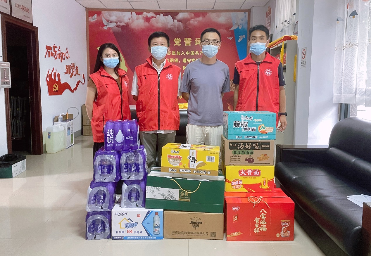 8月12日下午,党员志愿者在校党委宣传部副部长王磊的带领下来到威尼斯水城城开社区,为社区工作人员送去了医用酒精、84消毒液等防疫物资,以及矿泉水、牛奶、方便面等食品。随后王磊向城开社区杜奕衡主任了解了社区防疫情况,对奋战在防疫一线的社区工作人员表示感谢,并致以亲切问候。王磊表示,我校将继续积极配合结对社区开展志愿服务活动,竭力为社区提供服务和支援,助力郑州早日打赢疫情防控阻击战!
