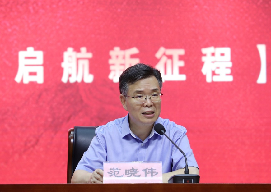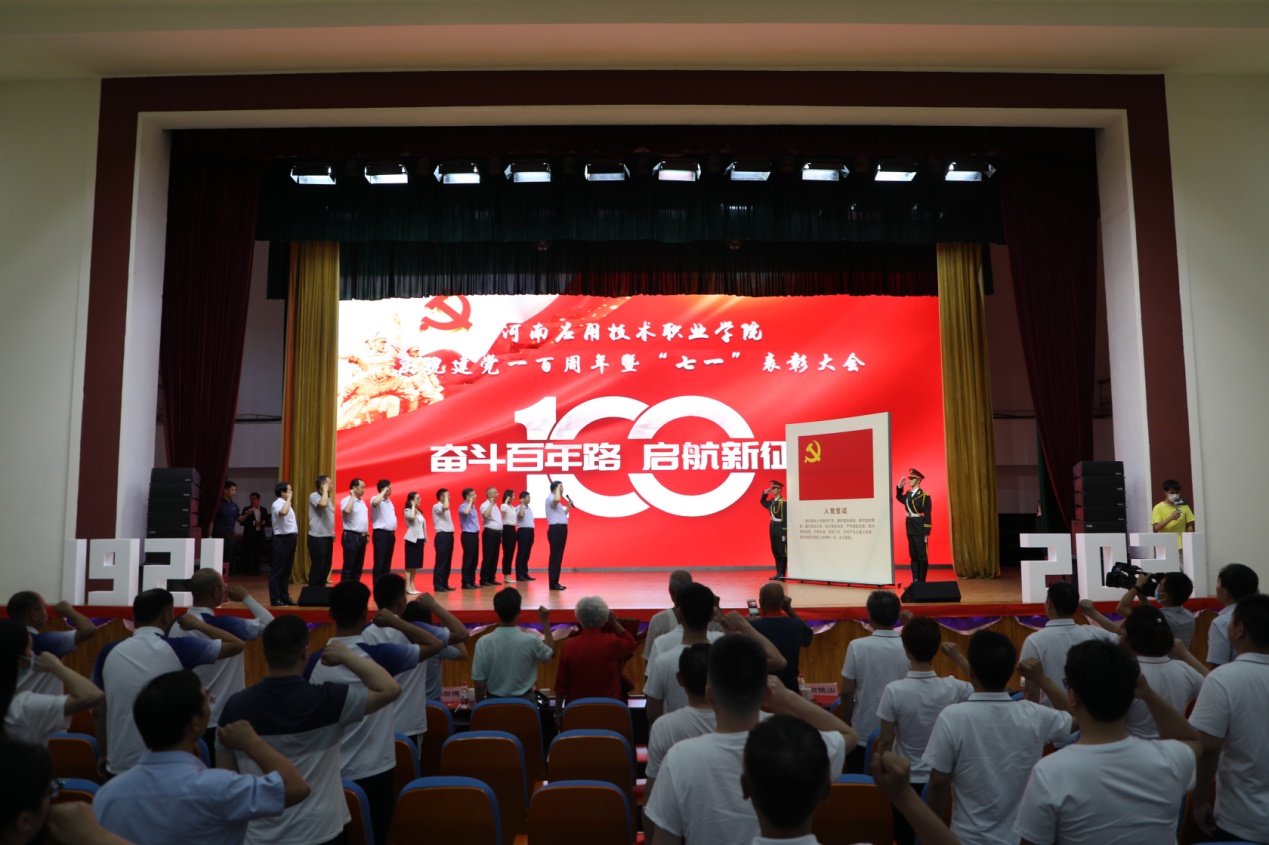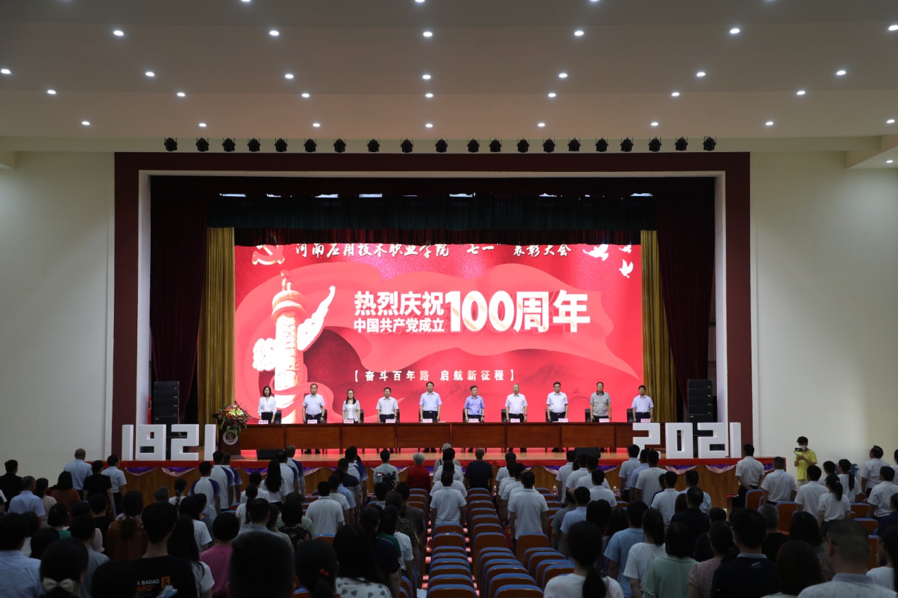 风雨百年路,砥砺新征程,在“七一”即将到来之际,为隆重庆祝中国共产党成立100周年,深化党史学习教育成效,进一步发挥先进典型的示范引领作用,2021年6月29日下午,我校召开了庆祝建党100周年暨“七一”表彰大会,学校全体党委委员、全体中层干部、全体党员及离退休党员代表参加大会。大会由校长范晓伟主持。