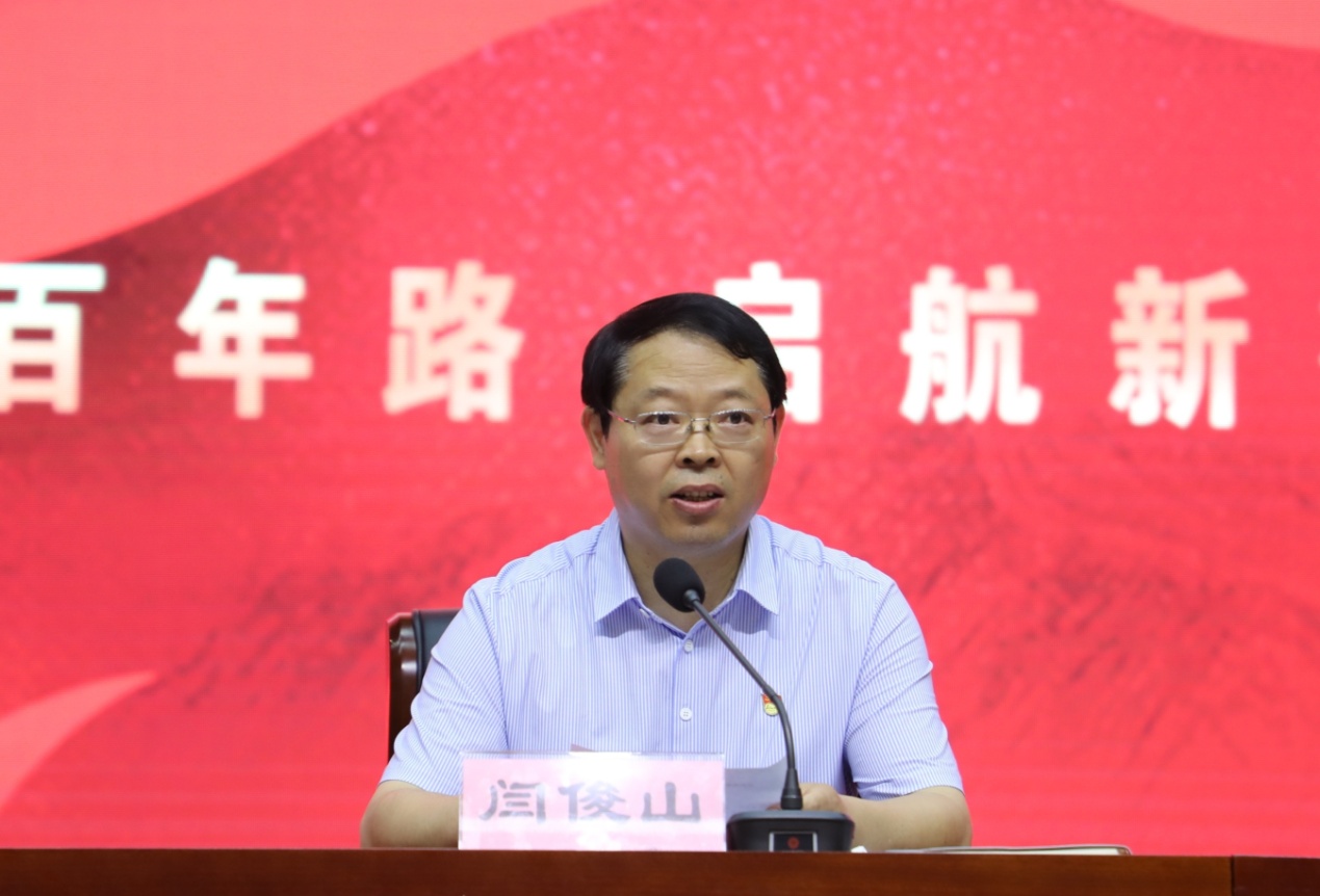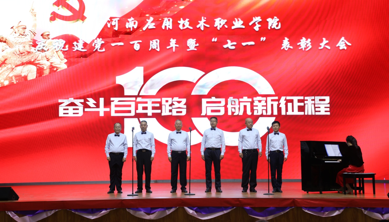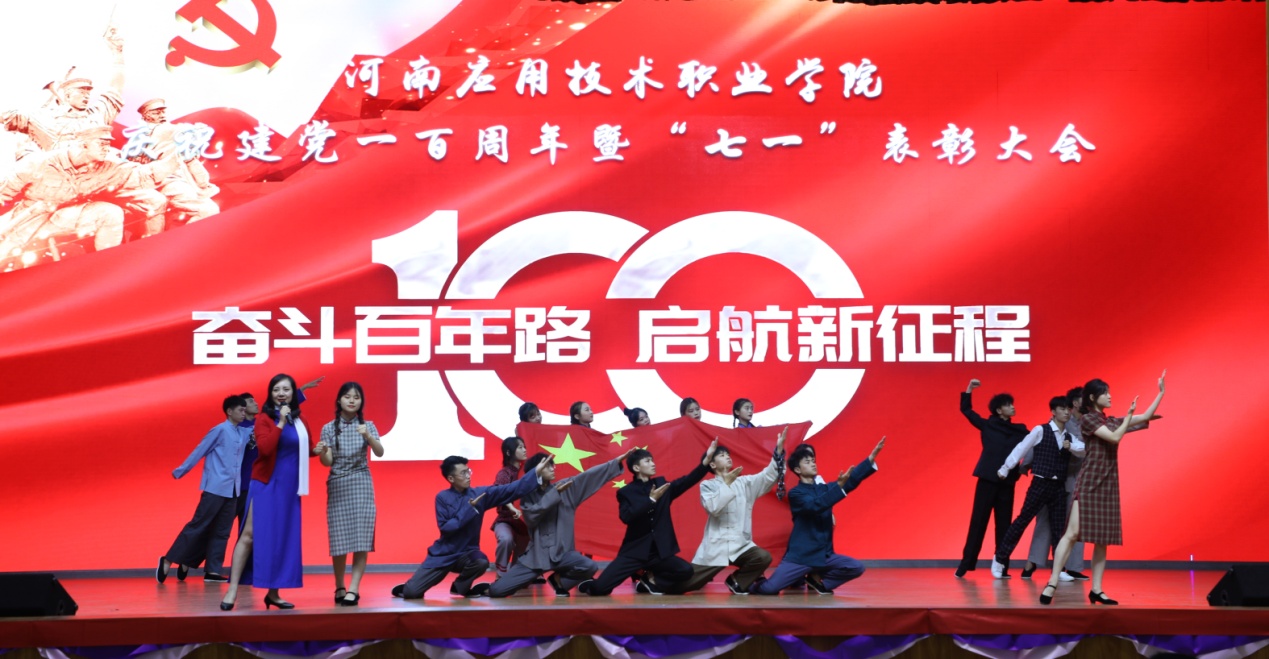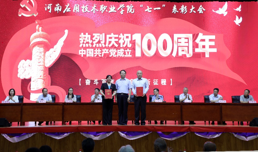 闫俊山指出,百年风雨,百年辉煌,中国共产党走过了整整一百年的历程。我们党开辟了伟大道路,建立了伟大功勋,铸就了伟大精神,积累了宝贵经验,创造了中华民族发展史、人类社会进步史上令人刮目相看的奇迹。实践充分证明,中国共产党不愧是中国革命与建设的中流砥柱,不愧是中国特色社会主义事业的中流砥柱,不愧是中华民族走向伟大复兴的中流砥柱。沐浴着党的阳光,伴随着时代的脚步,河南应用技术职业学院也走过了六十五年的光辉历程。在省委高校工委、省教育厅的坚强领导下,学校各级党组织和广大党员干部励精图治、发奋图强,用自己的勤劳、智慧和汗水,推动学校发生了翻天覆地的巨大变化,创造了无愧于历史的非凡业绩。