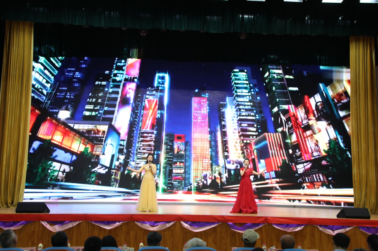 表彰大会结束后,庆祝建党100周年文艺演出《我把歌声献给党》正式开始,合唱《中国中国鲜红的太阳永不落》《团结就是力量》《打靶归来》《唱支山歌给党听》歌声嘹亮,旋律激昂;朗诵《百年礼赞》讴歌了党的伟大成就,表达了对党、对祖国深深的热爱;歌伴舞《绣红旗》,歌曲《灯火里的中国》《百年》呈现了中国共产党为人民谋幸福的初心使命,饱含人民对美好生活的向往。