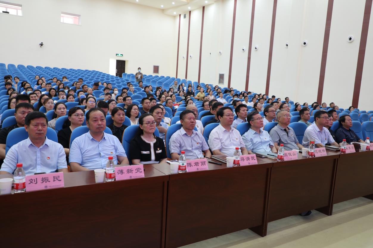 学校党委书记闫俊山谈到,习近平总书记的讲话指出,中国共产党带领全国各族人民从列强封锁到伟大复兴,从一无所有到繁荣昌盛,形成了坚持真理、坚守理想,践行初心、担当使命,不怕牺牲、英勇斗争、对党忠诚、不负人民的伟大建党精神。在开创未来的奋斗中,我们河南应用技术职业学院要坚持党的全面领导,牢固树立“四个意识”,坚定“四个自信”,坚决做到“两个维护”,切实从党的百年奋斗历史中汲取真理力量、信仰力量、精神力量、实践力量、群众力量和斗争力量,锤炼鲜明的政治品格,赓续伟大的建党精神,紧紧依靠全体师生员工,以奋斗的姿态开拓进取,以扎实的业绩擦亮底色,在加快建设高水平高等职业院校的征程中再立新功、再创辉煌,为办好人民满意的教育做出新的更大的贡献!