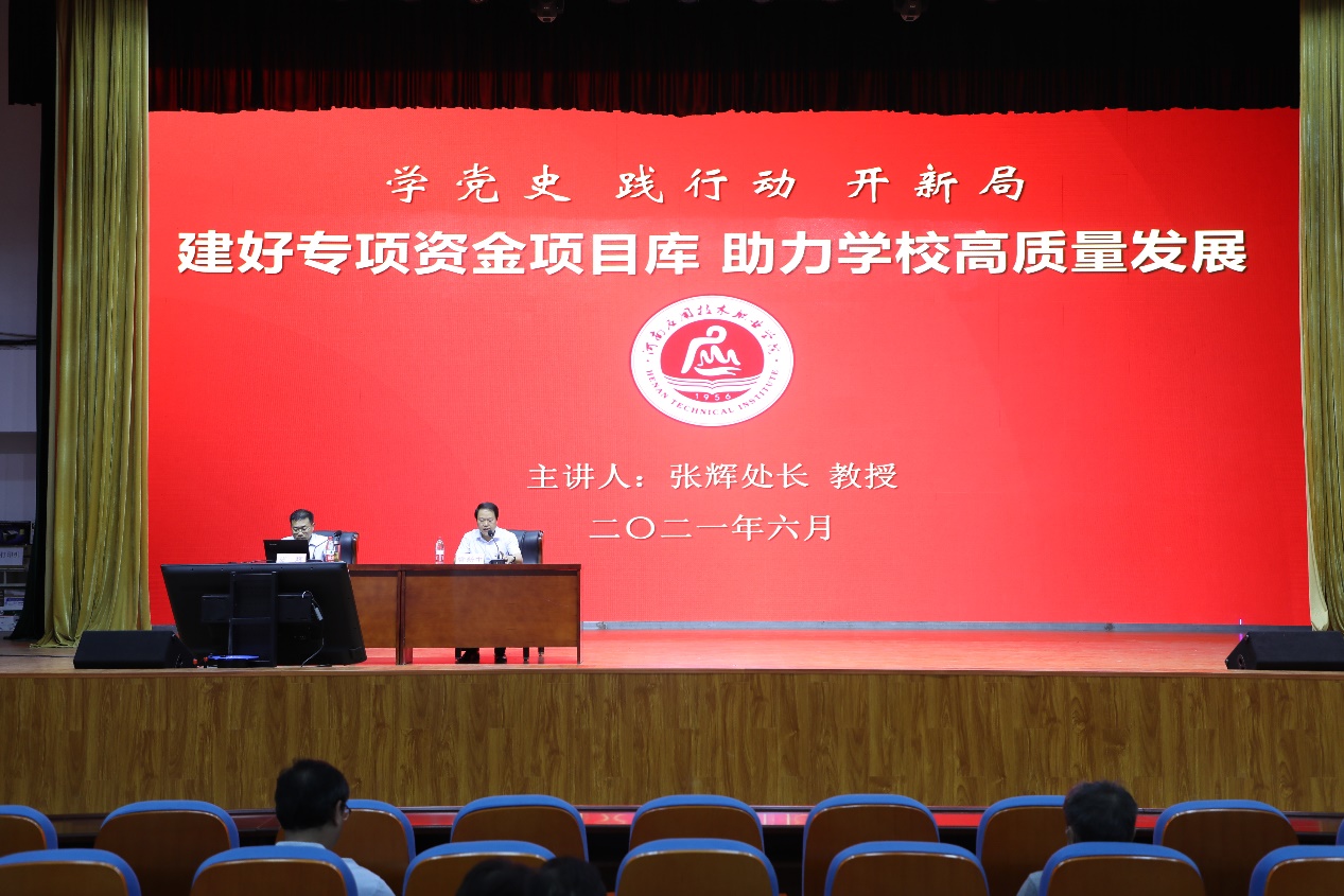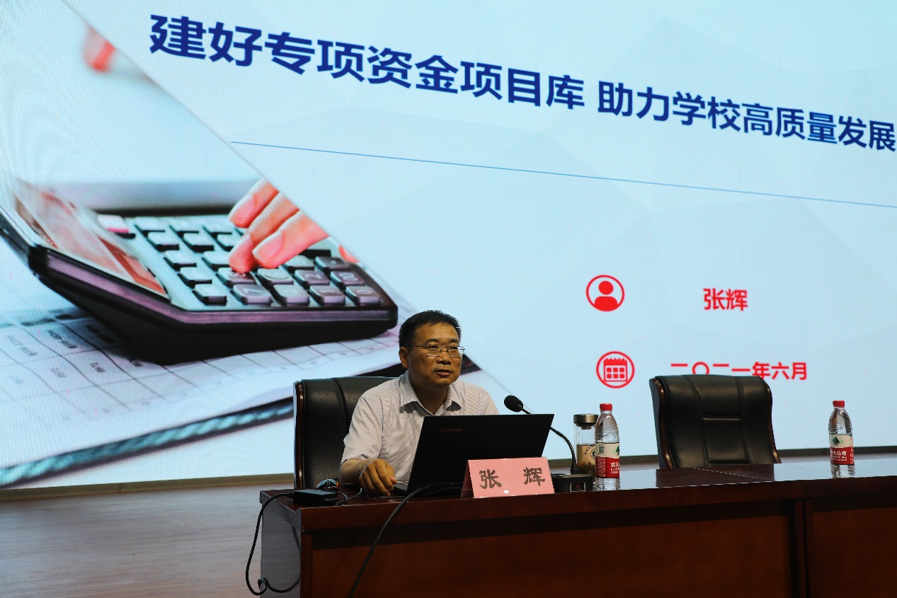 为做好学校2022年项目申报工作,提升项目申报的质量和水平,2021年6月15日下午,我校特邀请黄河水利职业技术学院财务处处长张辉教授做“建好专项资金项目库 助力学校高质量发展”专题报告会,报告会由财务处处长常新中主持,各部门负责人、二级院部党政负责人、财务报账员、二级学院教研室主任、专业负责人参加本次报告会。