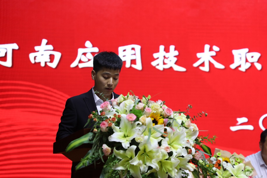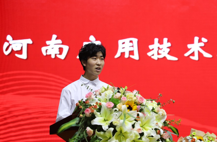 毕业生代表杨龙飞、在校生代表郑富豪、教师代表朱明悦依次发言。教师代表朱明悦教授在发言中勉励同学们要牢记母校重托,在为人为学、干事创业的道路上持之以恒,永保学习之心。