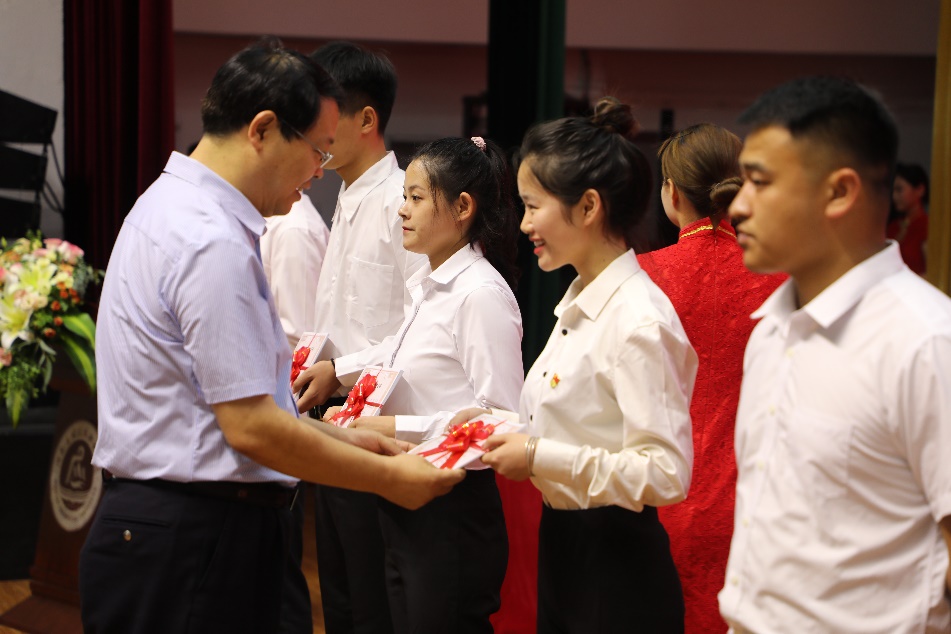 党委书记闫俊山为优秀毕业生代表颁发荣誉证书