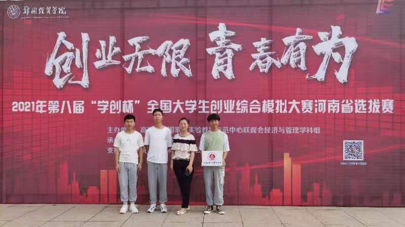 2021年6月19日,第八届“学创杯”全国大学生创业综合模拟大赛圆满落幕。来自河南省各地49所高校的125支(本科89支,高职36支)参赛队伍,共375名选手参加比赛。我校派出的三支代表队分别斩获省级特等奖2个,省级一等奖1个。我校其中一支代表队不仅以总分第一的成绩摘得桂冠,同时取得了第八届“学创杯”全国大学生创业综合模拟大赛国赛资格。