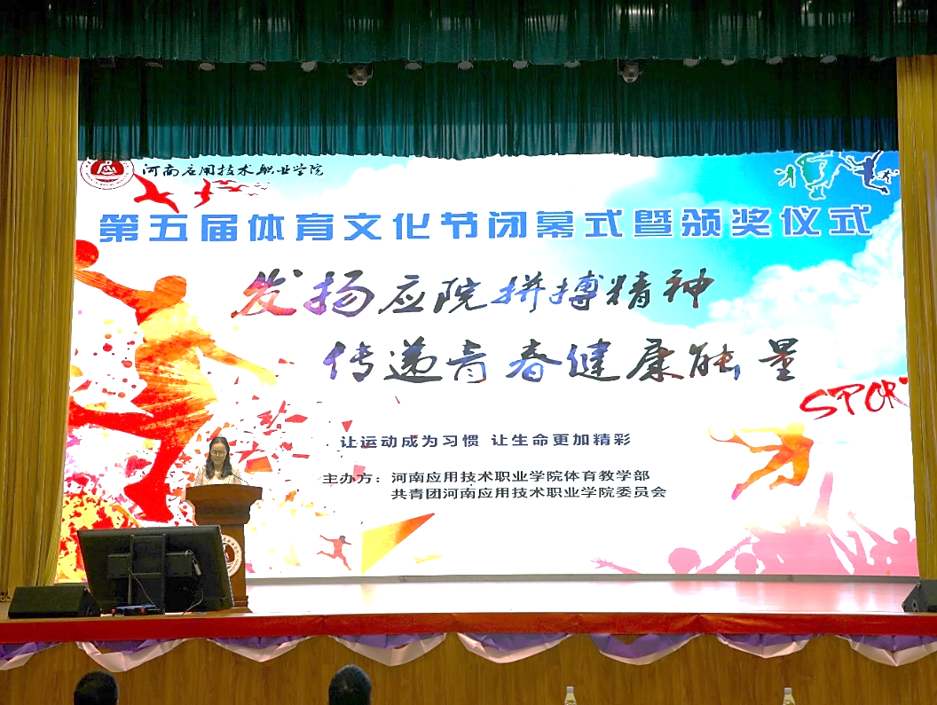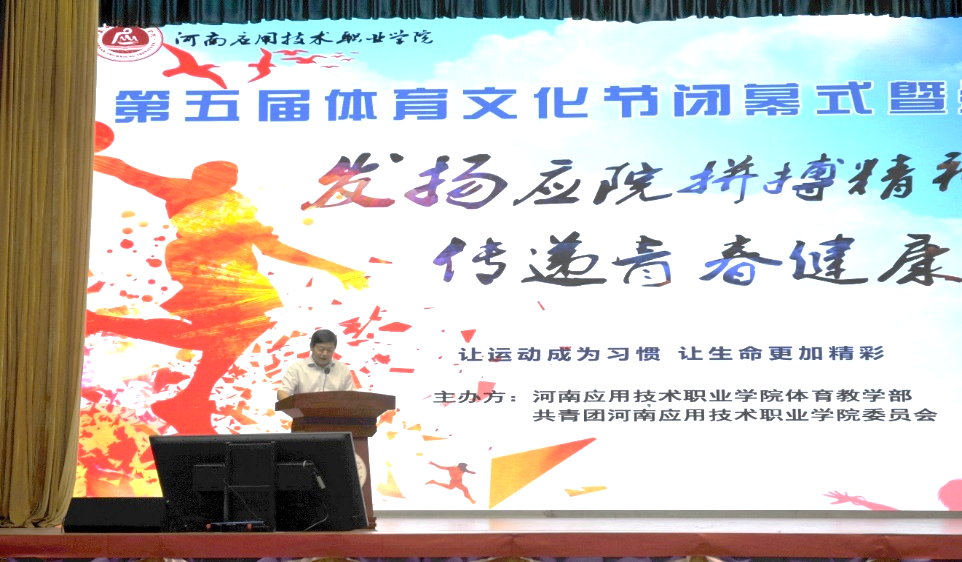 范晓伟宣布河南应用技术职业学院第五届体育文化节闭幕。