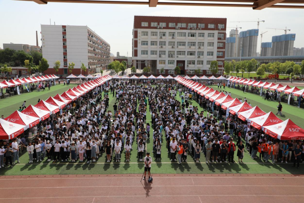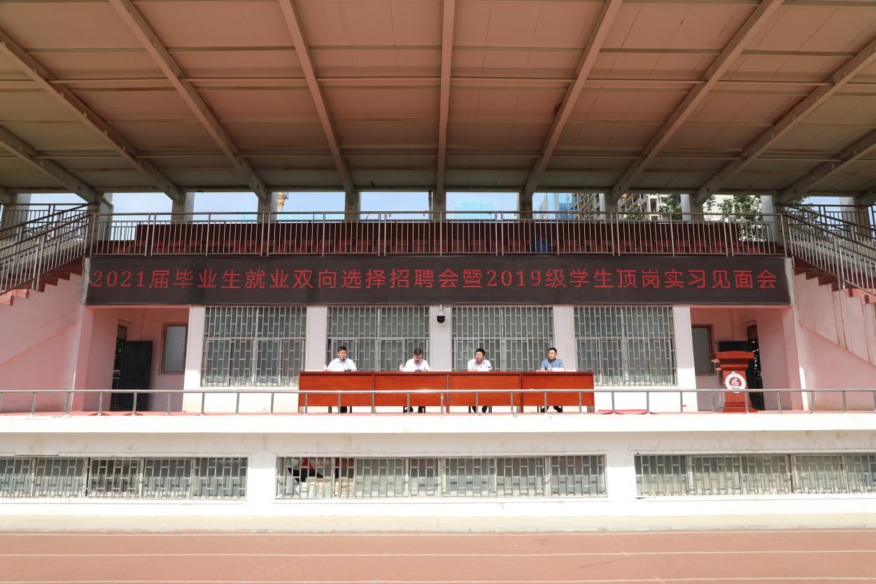 聚力增效促就业,致敬建党一百年。2021年5月28日,我校2021届毕业生就业双向选择招聘会暨2019级学生顶岗实习见面会在郑州校区田径场举行。学校校长范晓伟、党委副书记蒋清民、九六一集团副总裁范永军等领导出席校园双选会开幕式。开幕式由副校长刘振民主持。