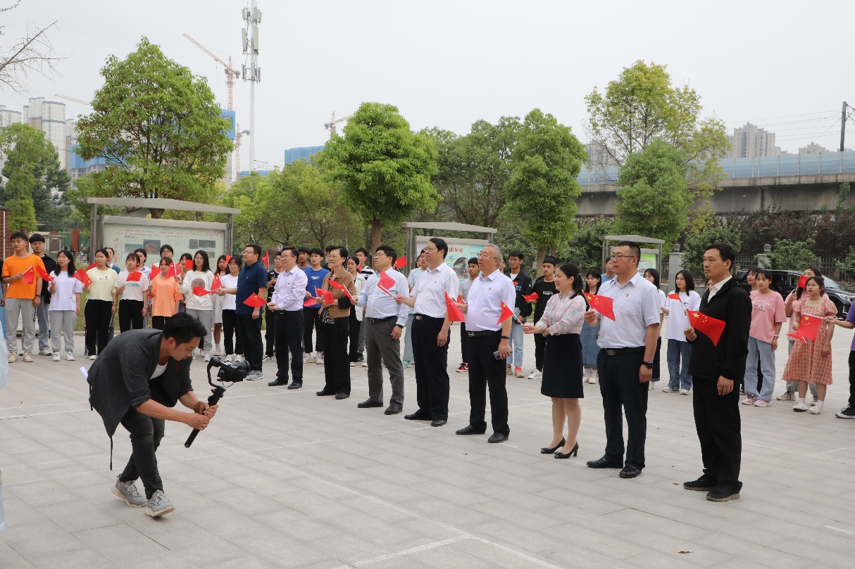 当日,我校师生正在彩排“永远跟党走奋斗新征程”庆祝建党100周年—“百首红歌接力唱”快闪活动,校园里传来阵阵响亮的歌声,铿锵有力振奋人心,寻着这熟悉的红歌旋律,巡回指导组成员在我校党委书记闫俊山、校长范晓伟等校领导的陪同下,一起前往彩排现场参与我校红歌传唱活动。