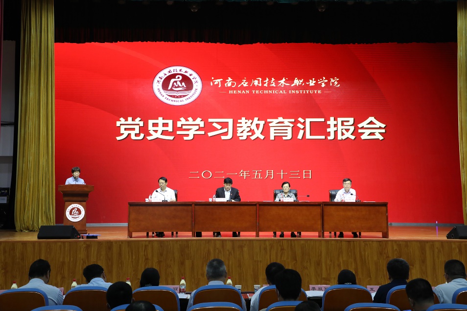 2021年5月13日,以省教育厅二级巡视员徐恒振为组长、河南财经政法大学原党委书记杨健燕为副组长的省委高校工委第一巡回指导组一行八人,到我校调研指导党史学习教育工作。我校在活动中心会议室召开党史学习教育汇报会,校党史学习教育领导小组组长、党委书记闫俊山及全体中层以上领导干部参加会议。校党史学习教育领导小组副组长、校长范晓伟主持会议。