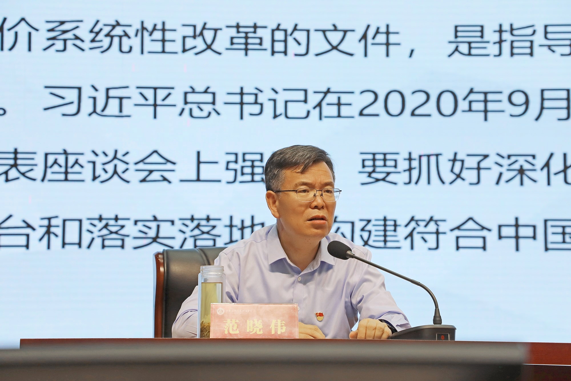 会上,范晓伟结合习近平总书记关于教育的重要论述,传达了教育部关于贯彻落实《总体方案》电视电话会议精神,重点围绕《总体方案》出台的背景、过程和意义,基本定位、考虑和特点,主要内容和精神,组织实施等方面进行了细致深入的宣讲。他指出,深化新时代教育评价改革是以习近平同志为核心的党中央在“两个一百年”历史交汇点上作出的重要决策部署,学校全面推进教育评价改革落实落地一是要坚定信心,加快推进学习贯彻;二是要下定决心,加快推进深化改革;三是要勇于探索,加快推进事业发展。全校上下要坚持以改革促进步,以改革促创新,以改革促发展,积累量变、实现质变,为学校事业发展注入新动能,推动学校各项工作高质量发展。