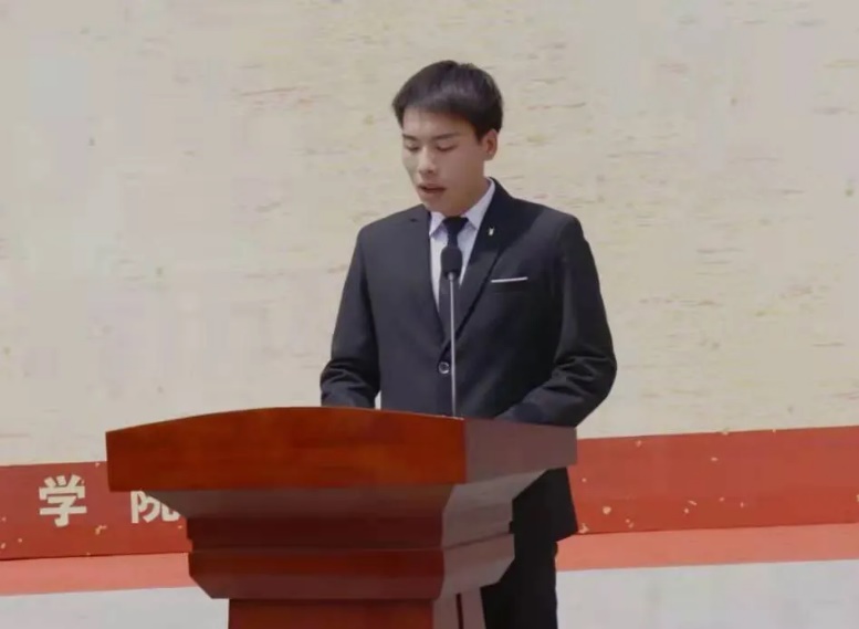 建筑工程学院室设1903班学生何旭洋代表青年学子向党表白发言:作为应院学子,要勇于开拓进取、坚定理想信念、锤炼高尚意志、加强自我修养、以锐意进取永不懈怠的精神状态,做好新时代大学生,做好实现中国梦的坚定践行者。