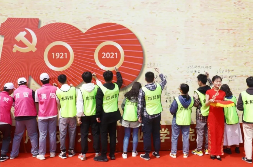 党委副书记朱东方代表党委向青年学子发出号召:在建党100周年之际,希望全体青年学生加强党史知识的学习,培养自己的政治涵养、科学文化素质、道德品质素养,时刻进步,提升自己的能力和素质,立足于学习和本职工作,严格要求自己,不断的提高和充实自己,不断拓展自己的视野。2021年是中国共产党建党一百周年,展开中国共产党一百年来的历史画卷,它承载着中华民族从苦难走向辉煌的艰辛岁月。