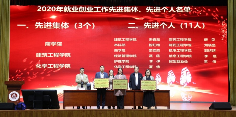 会上,刘振民宣读了《关于表彰2020年就业创业工作先进集体、先进个人的决定》,校领导为受表彰的3个先进集体及11位先进个人颁发了奖牌和证书。受到表彰的先进集体代表及先进个人代表依次进行了交流发言,孙小果老师宣读了《全体教职工为应院毕业生“送岗位,助就业”倡议书》。