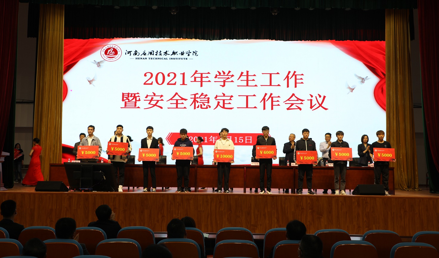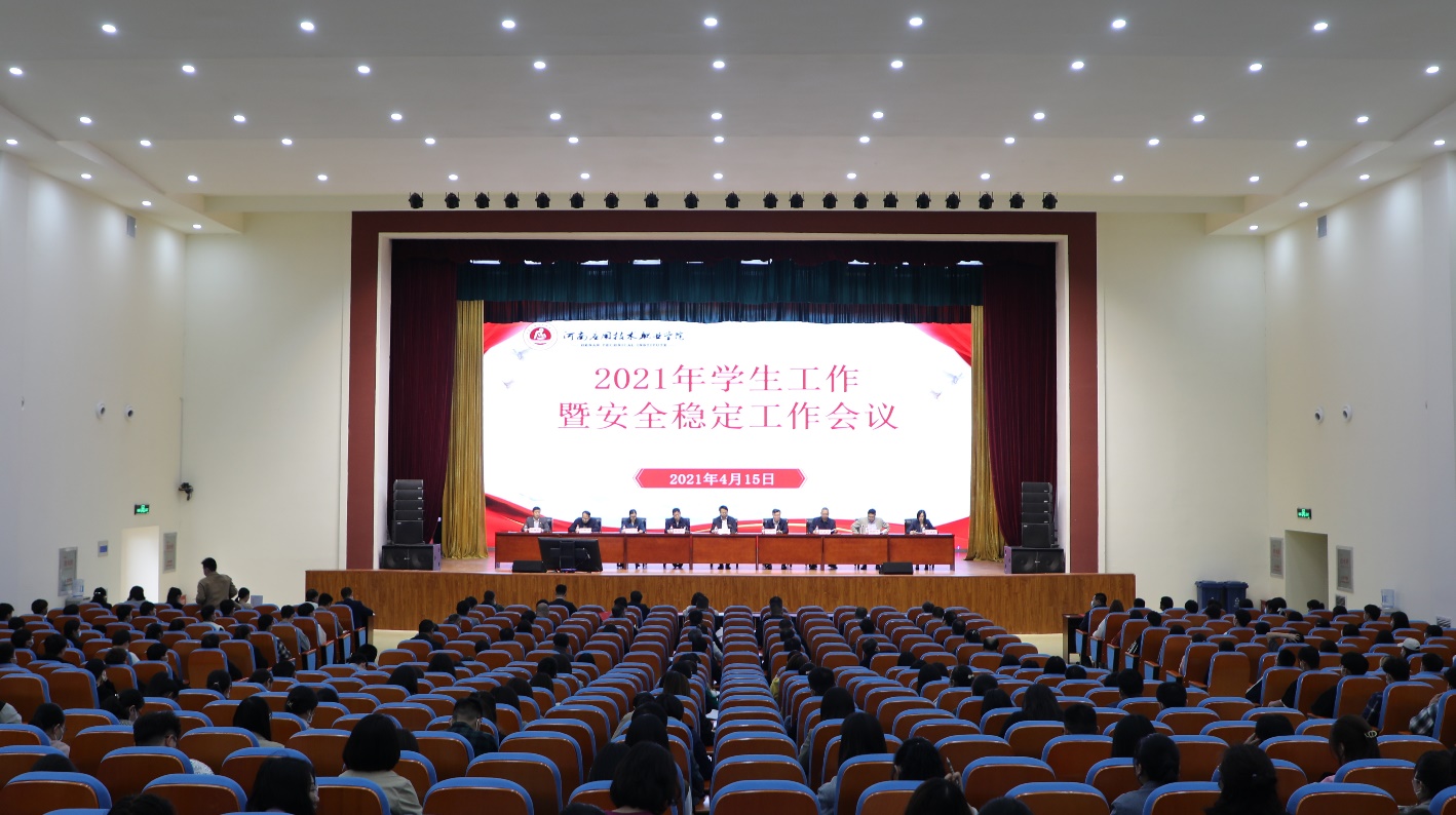 2021年4月15日,我校在大礼堂召开2021年学生工作暨安全稳定工作会议。学校领导班子成员出席会议,校属各部门负责人、全体学生管理工作人员、专职辅导员、班主任、学生代表参加会议。会议由校长范晓伟主持。