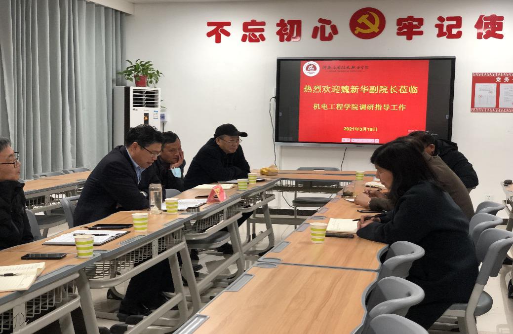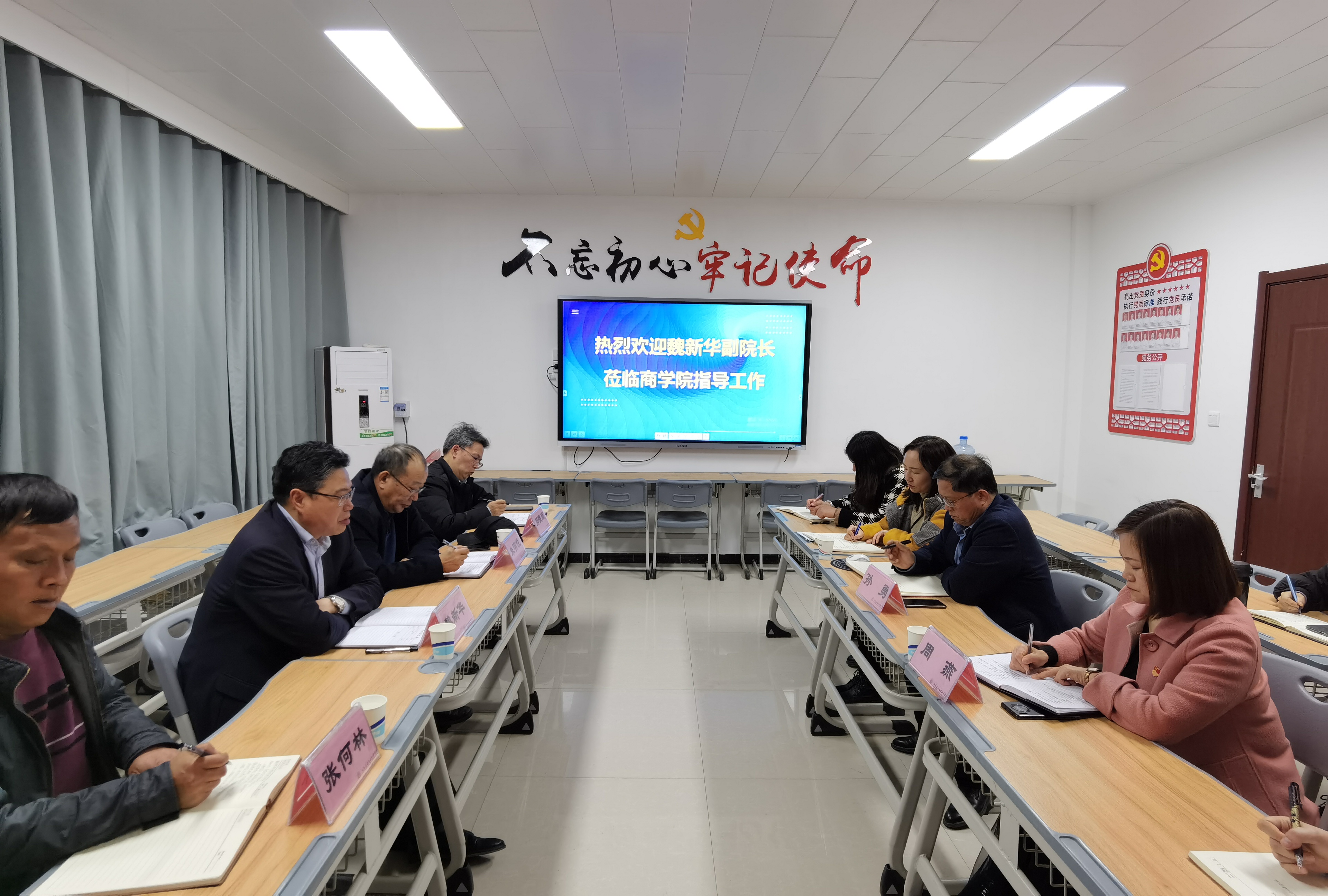 2021年3月15日至18日,副校长魏新华在学校有关职能部门负责人陪同下,分别到商学院、基础教学部、机电工程学院进行工作调研。调研中,魏新华听取了院(部)负责人的工作汇报,并召开座谈会,听取了专任教师、教研室主任等老师就师资队伍建设、绩效工资发放、教学和学生管理等方面工作提出的意见和建议,并对大家提出的问题进行了交流。