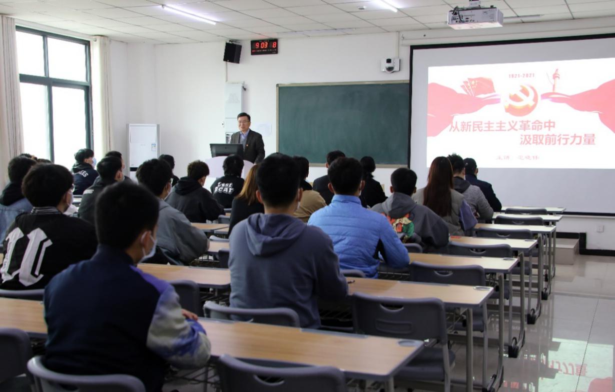 2021年是中国共产党成立100周年,为深入学习贯彻习近平新时代中国特色社会主义思想,落实习近平总书记在“党史学习教育动员大会”上的讲话精神,从党的百年伟大奋斗历程中汲取继续前进的智慧和力量。3月19日,校长范晓伟以“从新民主主义革命中汲取前行力量”为主题,为我校“青马班”学生和思政部教师上了一堂专题党史课。