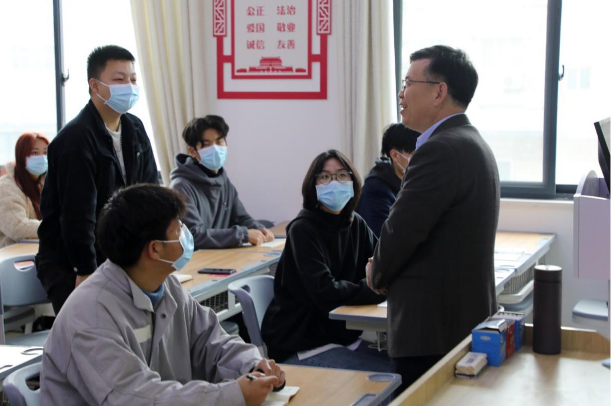 同时,范晓伟还针对学生提出的如何进行党史学习问题,与学生进行了亲切地互动交流。他鼓励学生多读书、多学历史、多思考问题,他指出,党史是坚定我们理想信念的“风向标”;党史是厚植我们爱国情怀的“活教材”;党史是激励我们艰苦奋斗的“对标尺”;党史是激发我们创新发展的“源动力”。他强调要认真践行“学史明理、增信、崇德、力行”,要牢记习近平总书记“学党史、悟思想、办实事、开新局”的重要指示。最后,校长还为学生推荐了生命认识、历史总结、军事战争等领域的经典书籍,希望同学们坚持学党史,更好地把握我们中华民族和中国共产党的过去、现在和未来。