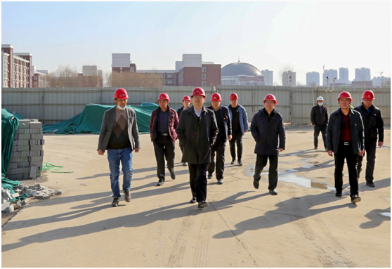 2021年2月1日上午,校党委书记闫俊山、校长范晓伟一行深入新校区建设工地,实地调研项目建设推进情况,副校长左智成及新校区建设指挥部相关人员陪同调研。