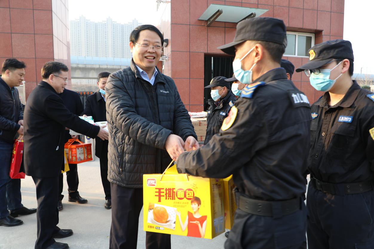 校领导向一线工作人员送上慰问品,代表学校感谢他们放弃与家人团聚的机会,节假日仍坚守工作岗位,为全校师生度过一个安全、和谐的春节提供有力保障,并叮嘱他们做好疫情防控,照顾好自己的生活,欢度新春佳节。