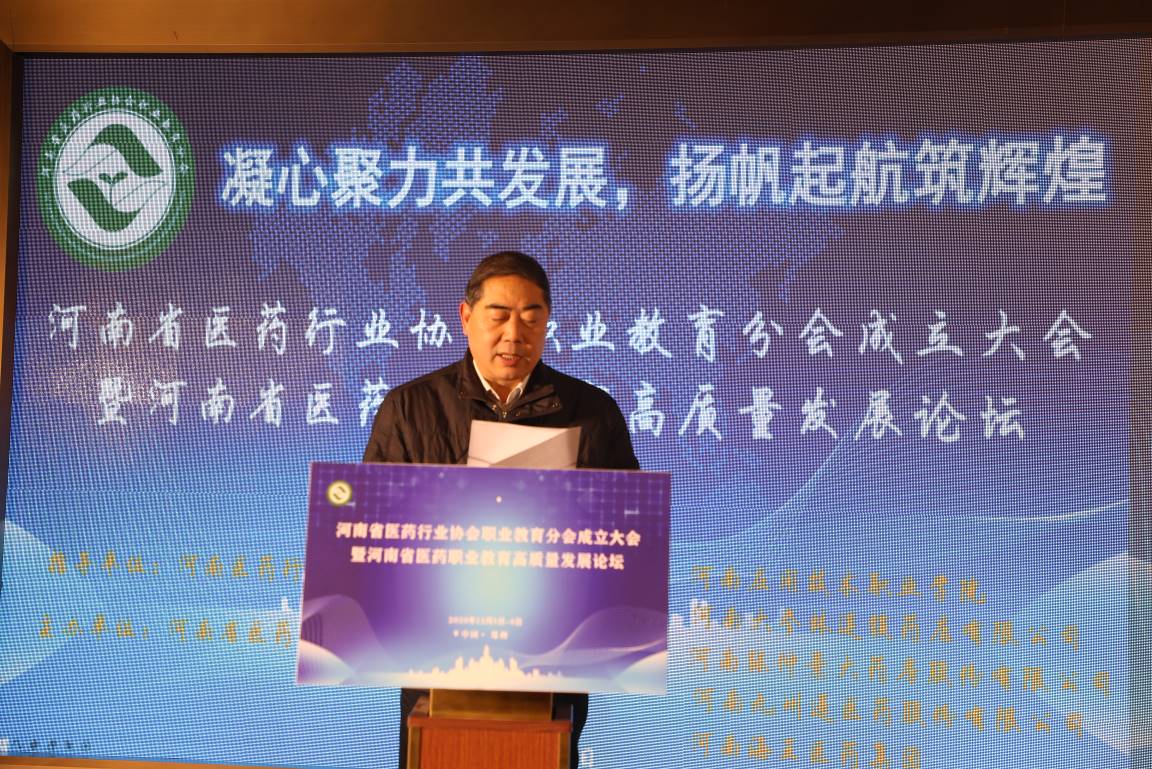 河南省医药行业协会秘书长张宝献宣读河南省医药行业协会职业教育分会成立文件。