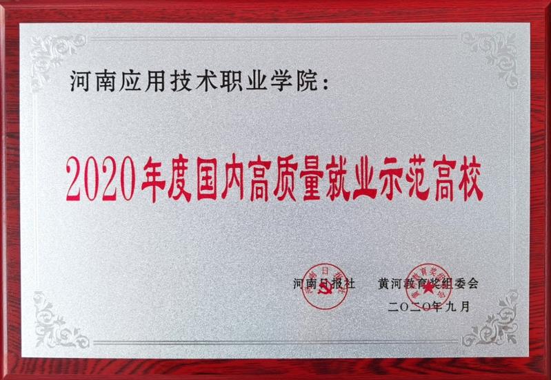 9月22日下午,由河南日报社主办的“第十一届河南高等教育品牌竞争力高端研讨会”暨“黄河教育奖”颁奖典礼在郑州召开,河南省政府原省长助理卢大伟、中国高等教育学会副秘书长郝清杰等出席,全省80多所大中专院校的近200多名嘉宾参会。我院荣获“2020年度河南高等教育榜样示范高校”和“2020年度国内高质量就业示范高校”称号。