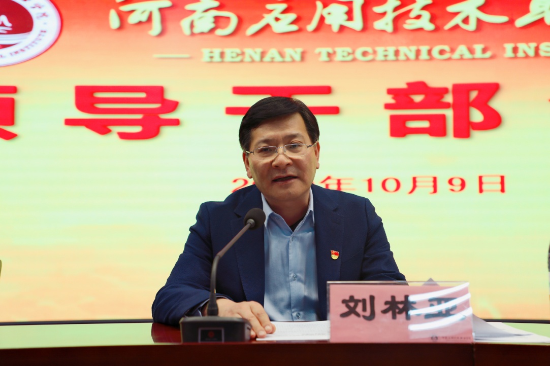 刘林亚同志就我院领导班子建设和学院事业发展提出五点希望和要求,一是要讲党性,进一步坚定理想信念。要坚持对党忠诚的政治品格,把理想信念作为安身立命的命脉和灵魂,持之以恒推动习近平新时代中国特色社会主义思想往深里走,往心里走,往实里走。要把“不忘初心、牢记使命”主题教育作为加强党的政治建设的永恒课题和全体党员干部的终身课题,切实推进主题教育常态化、制度化。二是要讲发展,着力深化教育教学改革。学院党委要全面贯彻落实国家职业教育改革实施方案,不断在提升职业教育质量水平,体制机制创新,人才培养模式改革等方面取得更多突破性成果,不断在主动适应经济社会发展新常态进程中取得更多新成绩。要时刻绷紧疫情防控这根弦,毫不放松的落实各项防控措施,坚决把新冠肺炎疫情阻挡在校园之外,夺取疫情防控和事业发展的双胜利。三是要讲学习,全面增强办学治校能力。领导干部要坚持理论联系实际的马克思主义学风,努力掌握马克思主义的立场、观点、方法,拓宽眼界和视野,不断提升破解难题的能力,推进发展的能力,应对竞争的能力,决策创新的能力。要进一步提高政治站位,增强大局观念,加强战略思维,始终把全局作为观察和处理问题的出发点和落脚点,不断提高工作的原则性,系统性,预见性和创造性。四是要讲团结,切实增强干事创业的合力。学院党委要按照社会主义政治家、教育家的要求,切实加强思想政治建设,不断提高办学治校水平,努力成为政治坚定、能力过硬、作风优良、奋发有为的坚强领导集体。领导班子成员要把维护团结作为政治追求,努力营造齐心协力,相互支持,人心凝聚,和谐稳定的发展环境。五是要讲廉政,始终保持清正廉洁本色。要认真学习贯彻《中国共产党廉洁自律准则》与《中国共产党纪律处分条例》,严格按制度办事,按规矩办事,从思想上筑牢拒腐防变的堤防,树立清正廉洁的良好形象,杜绝腐败现象的滋生,时刻保持共产党员清正廉洁的政治本色,以更加饱满的进取精神和更加蓬勃的昂扬斗志不断为全省经济社会发展,为中原更加出彩做出新的更大的贡献。