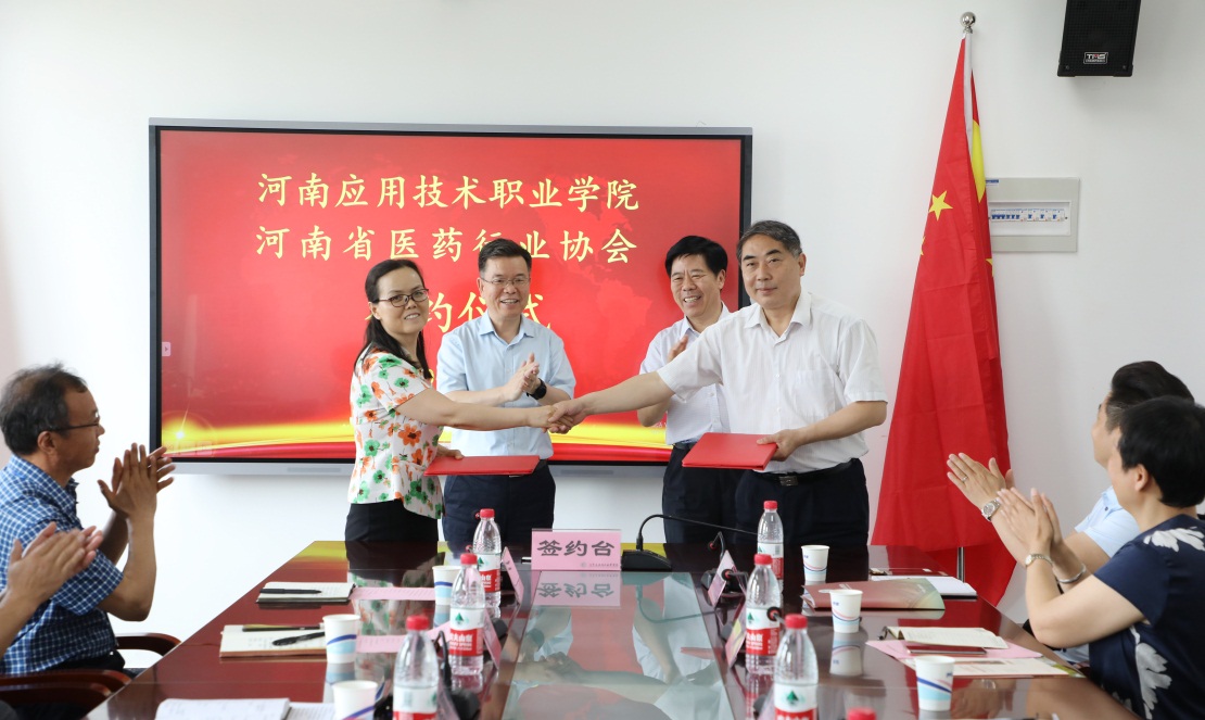 副院长陈君丽和河南省医药行业协会秘书长张宝献代表双方签订了校企合作协议,随后双方就产教融合、校企合作事宜进行了深入交流。