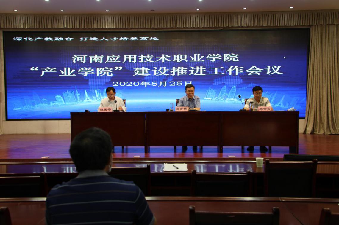2020年5月25日上午,我院在实训中心二楼会议室召开“产业学院”建设推进工作视频会议。院长范晓伟、执行总督学苏万益教授、副院长赵玉奇出席会议,教务处、职业教育研究所、招生就业处、发展与质量管理处部门负责人和各二级学院负责人、相关教师参会。会议由赵玉奇主持。