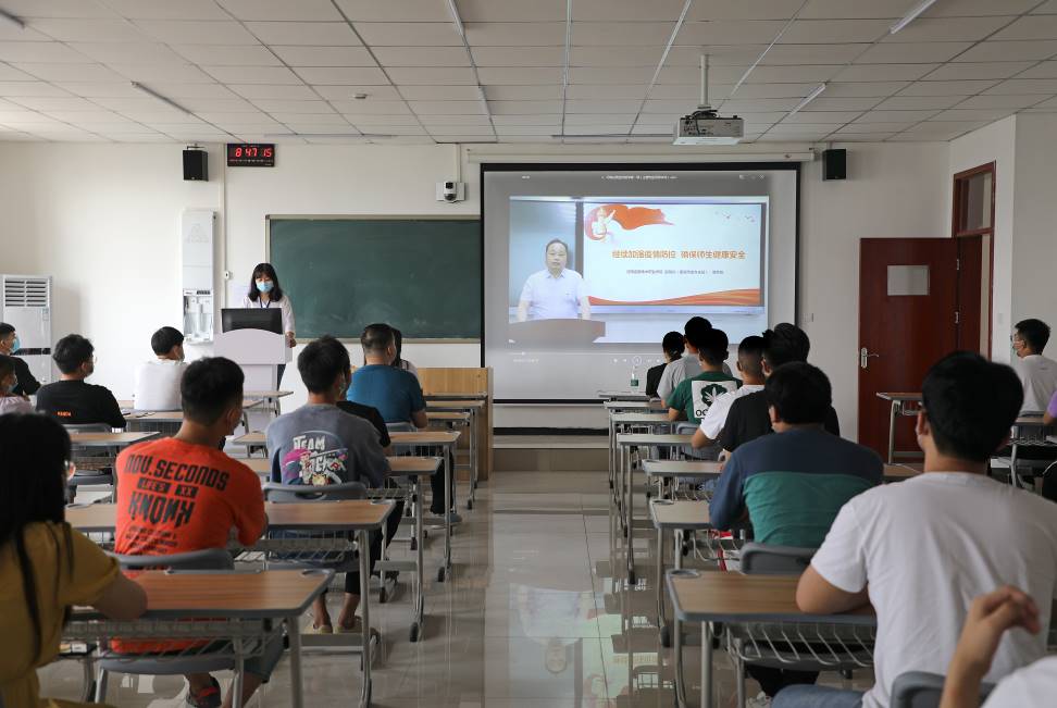副院长、疫情防控办主任薄新党同志《继续加强疫情防控 确保师生健康安全》为主题,重点介绍了学校整体防控工作情况,学生返校前准备工作、返校后如何做好常态化防控等各阶段的各个具体环节、各部位的防护流程提出了具体要求。