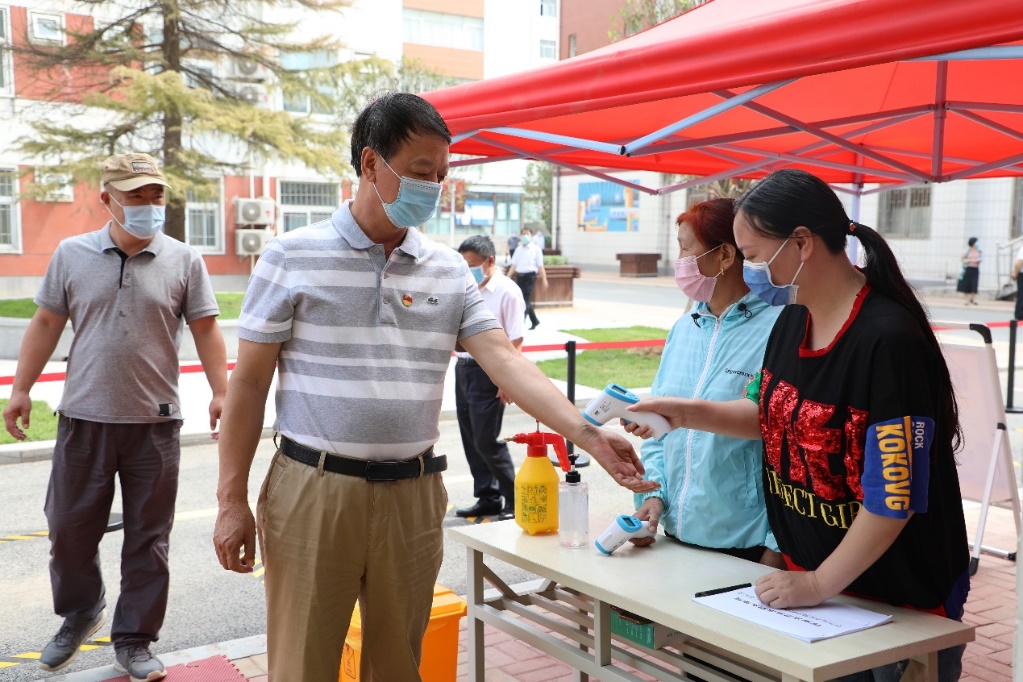 付凯波一行首先观摩了我校疫情防控演练,对学生与教职工入校扫码登记、体温检测、全身消毒、异常人员观察留置等防控流程予以指导。