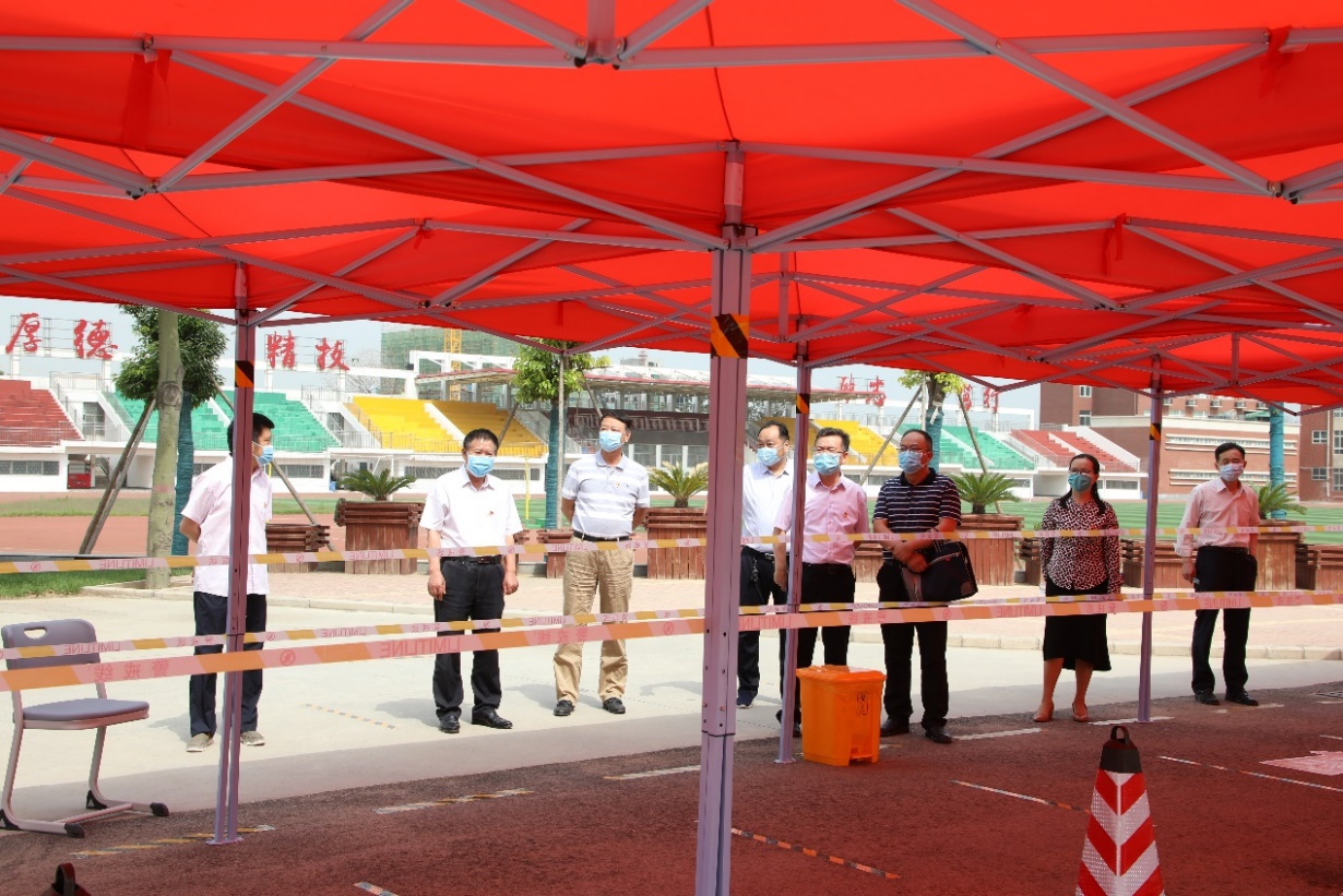 为切实做好我校疫情期间返校复学工作,保障全体师生身体健康与生命安全,2020年5月20日上午,郑州市中原区教育局体卫艺科科长付凯波带领中原区疾控中心、中原区市场监督管理局相关负责同志组成的督导检查组,来到我校实地督导检查疫情防控和返校复学准备工作。党委书记秦书君,院长范晓伟,党委副书记蒋清民、朱东方,副院长赵玉奇、陈君丽、薄新党及我校疫情防控领导小组办公室工作人员陪同检查。