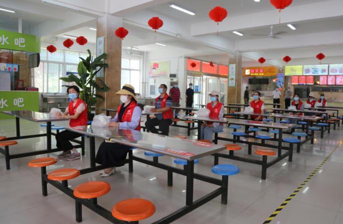 采取错时就餐、固定套餐、间隔就餐,实行一人一桌同向就座,做到不扎堆进餐,用餐完毕后按退场路线离开。