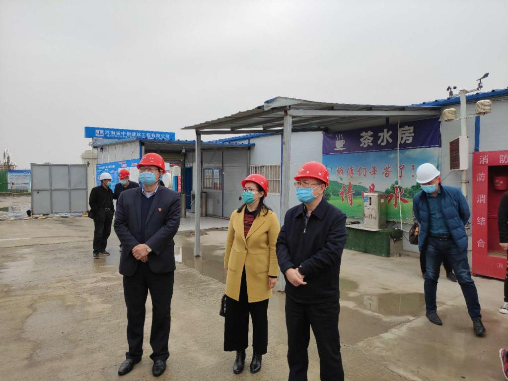 2020年4月1日上午,校长范晓伟来到开封考察在疫情防控下复工建设的新校区建设情况。副校长陈君丽、左智成,纪委书记魏新华等领导陪同考察。