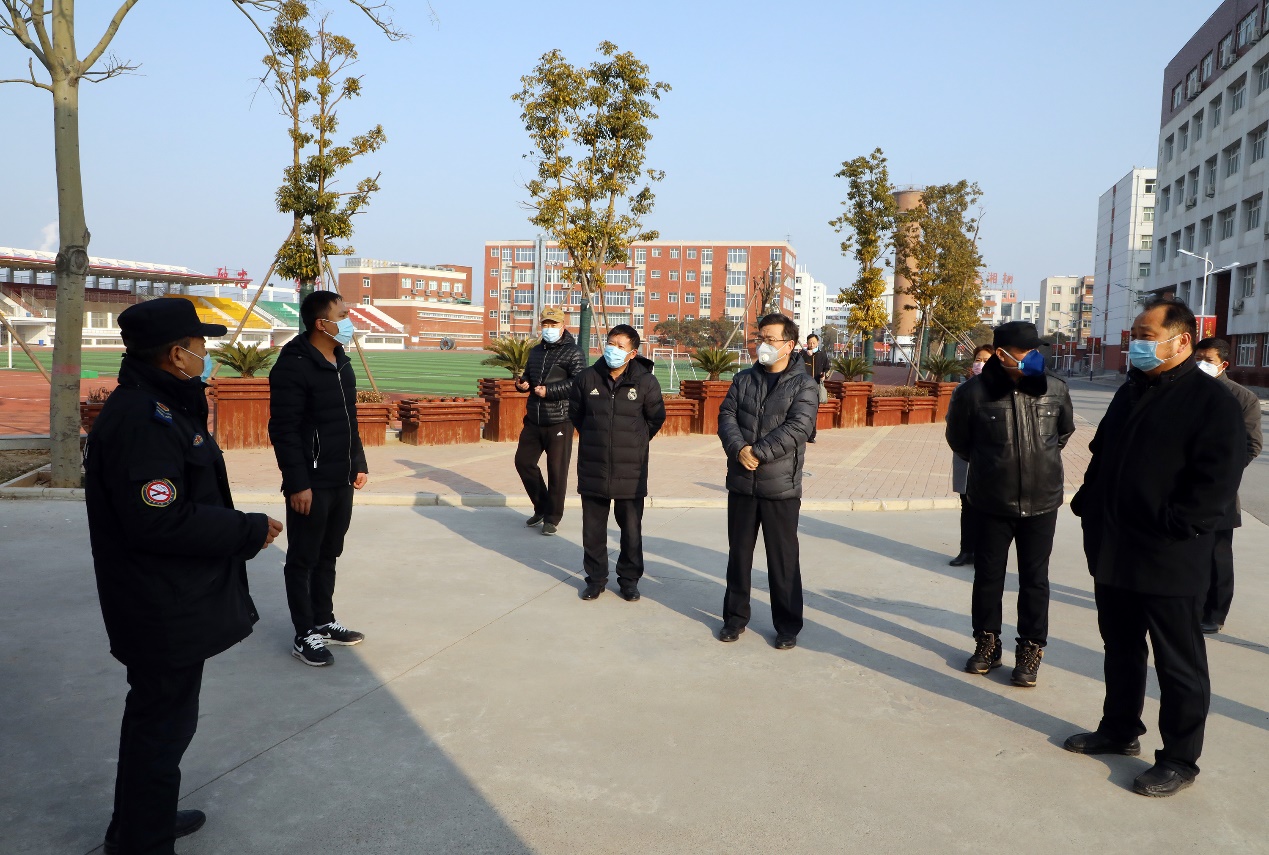 会前,校长范晓伟带领相关部门负责人查看了校园疫情防控工作情况并慰问了奋战在一线的值班教师与后勤、保卫工作人员。