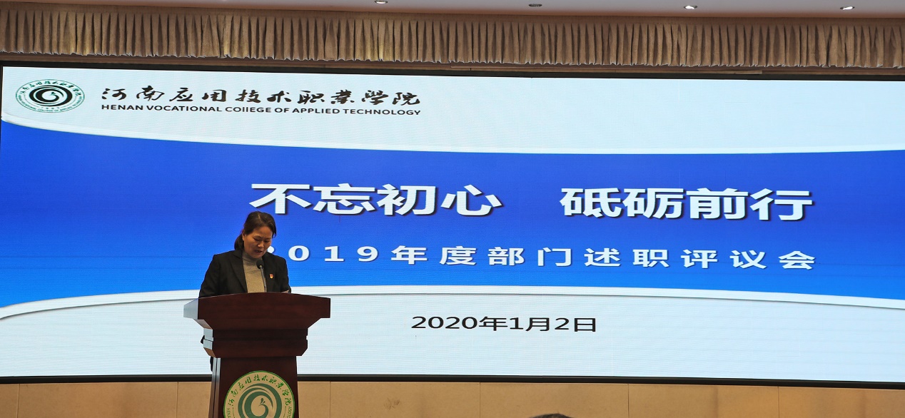 2020年1月2日,我校2019年度部门工作述职评议会议在实训大楼二楼会议室召开。学校领导班子成员、全体副科级及以上干部、副高级及以上职称人员参加会议。会议由学校党委副书记蒋清民主持。