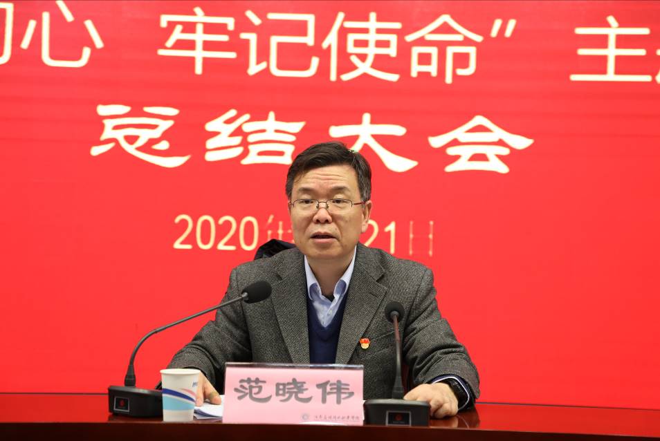 范晓伟校长在谈到工作体会时指出,我校在第二批“不忘初心、牢记使命”主题教育中积累了丰富经验,提升了全体教职员工干事创业的动力。一是思想认识到位是基础。只有把学习贯穿始终,不断深化对主题教育重大意义的认识,深化对党的初心和使命的认识,主题教育才能不散光,不跑偏。二是检视问题到位是导向。只有把问题找到找准,把根源挖深,才能明确努力方向和改进措施。三是整改落实到位是根本。唯有坚持对症下药、突出重点抓整改,才能实现真正经得起历史实践和人民检验的实实在在的成效。四是组织领导是关键。领导干部必须扛起主责、抓好主业、当好主角,发挥“关键少数”作用,做好示范、当好表率。