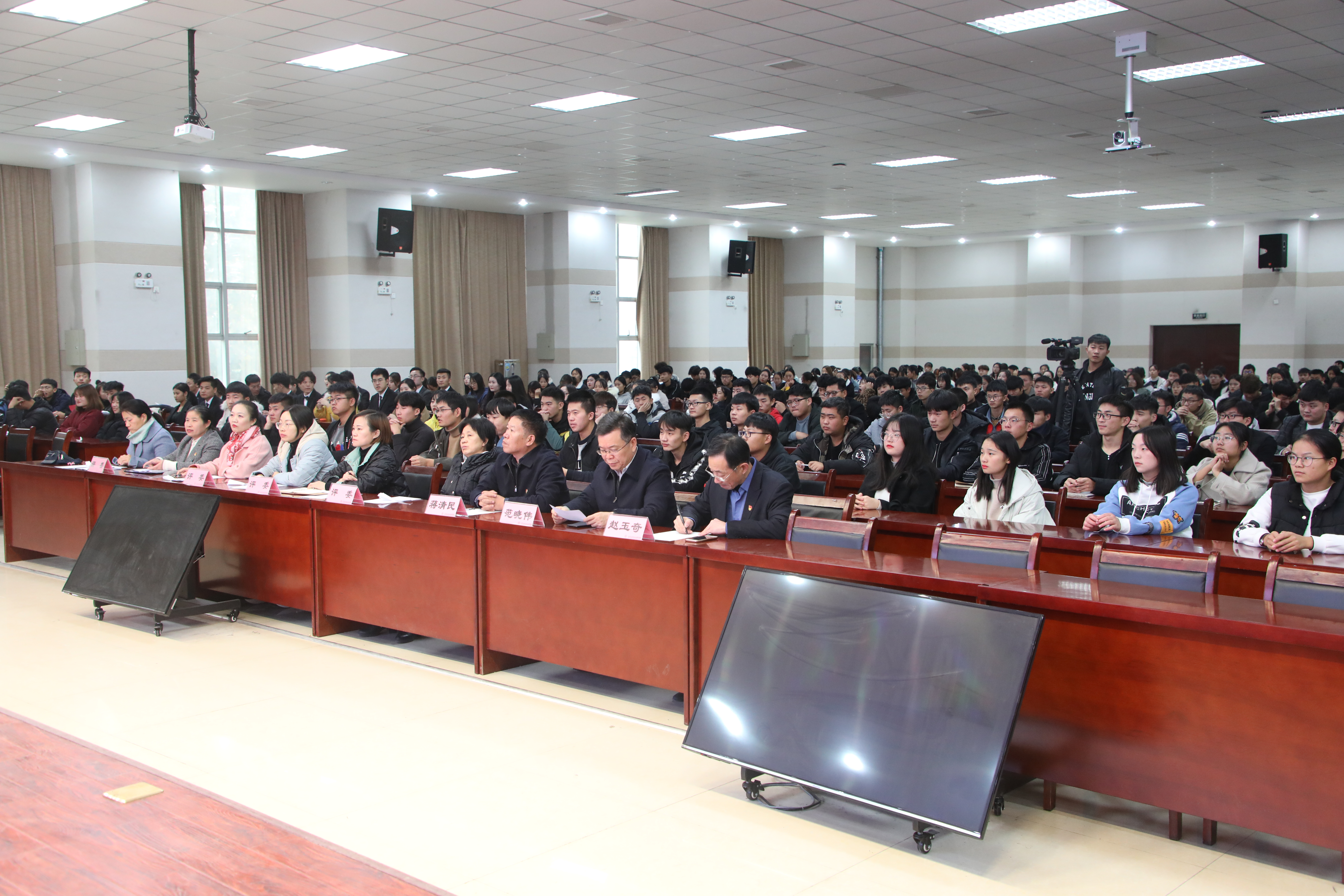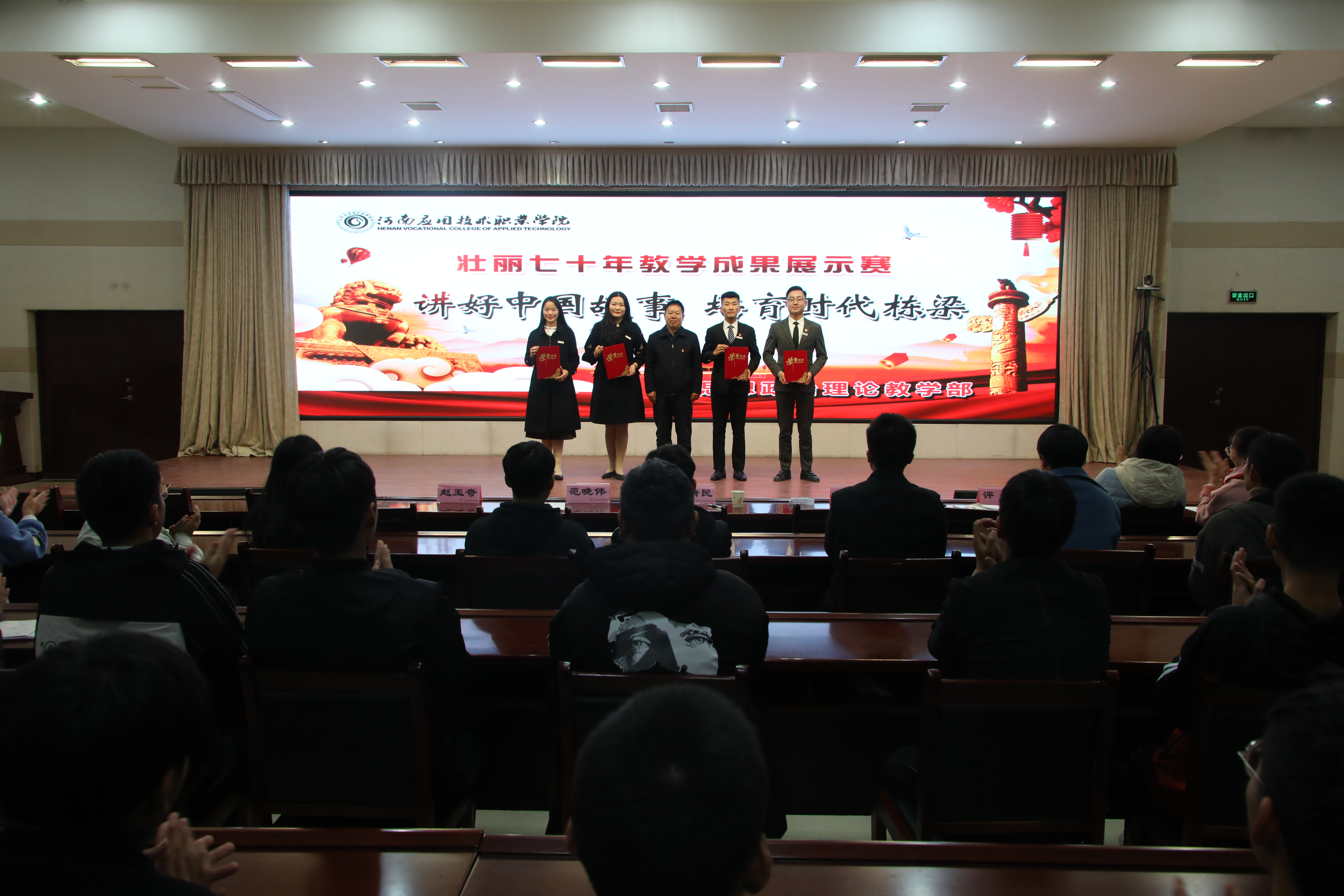 为认真贯彻落实习近平总书记讲好“四个故事”要求,不断提升学校思政工作整体水平,在“不忘初心、牢记使命”主题教育开展之际,2019年11月26日下午,由我校思想政治理论教学部主办的“讲好中国故事 培育时代栋梁”教学成果展示大赛决赛在二号实训楼二楼会议室举行。校长范晓伟、党委副书记蒋清民、副校长赵玉奇及相关部门负责人、师生代表300余人观看了比赛。
