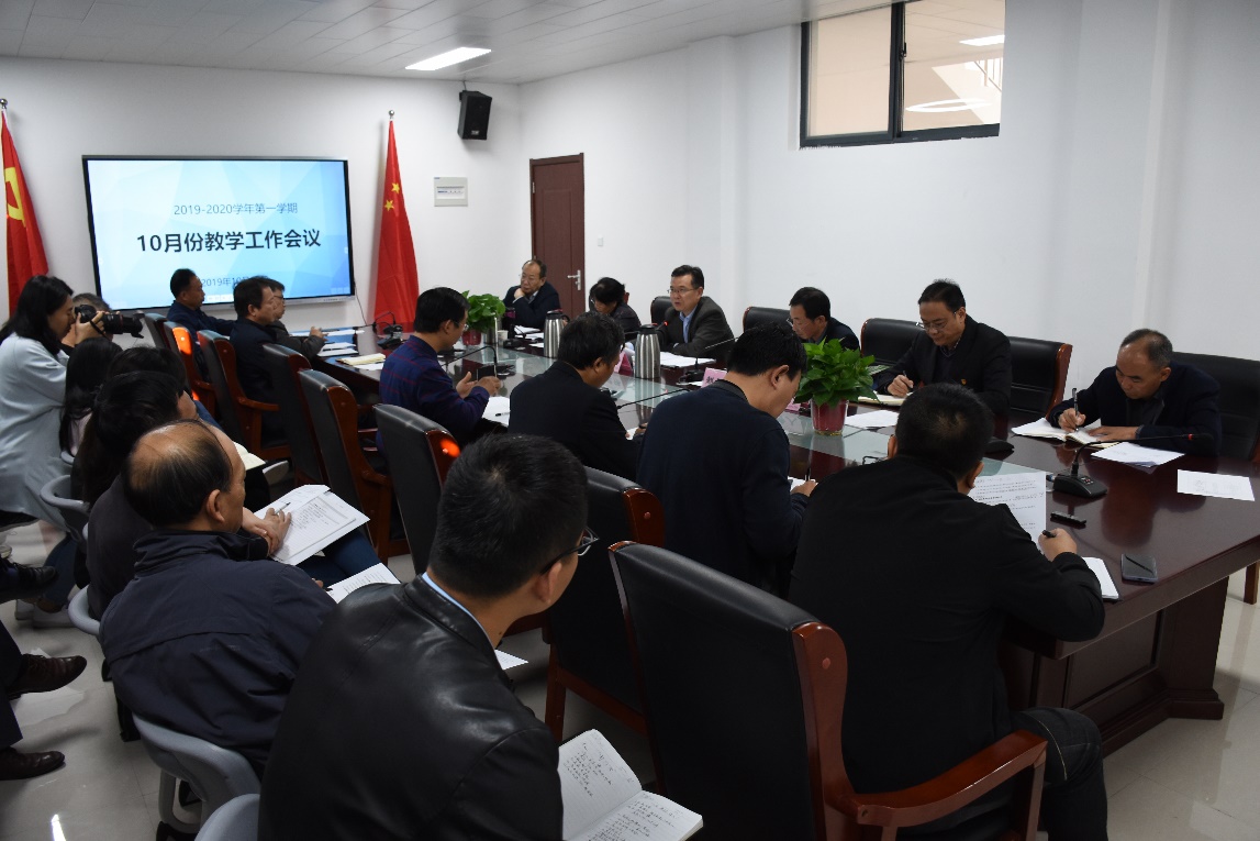 为进一步贯彻落实习近平总书记关于教育的重要论述及全国全省教育大会精神,在“不忘初心、牢记使命”主题教育开展之际,2019年10月23日上午,我校在办公楼三楼会议室召开教学工作例会,校长范晓伟出席会议,党委副书记朱东方,副校长王建新及相关职能部门、东西校区各二级院部负责人参加会议。副校长赵玉奇主持会议。