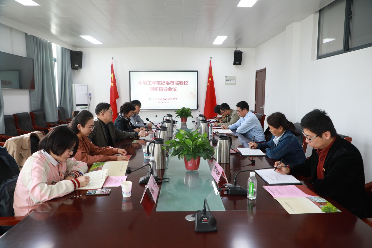2019年10月24日下午,中原工学院纪委书记李俊杰一行5人来我校调研交流纪检监察工作。交流会在办公楼三楼会议室举行,校纪委书记魏新华出席并主持会议,纪委(监察处)全体工作人员参加会议。