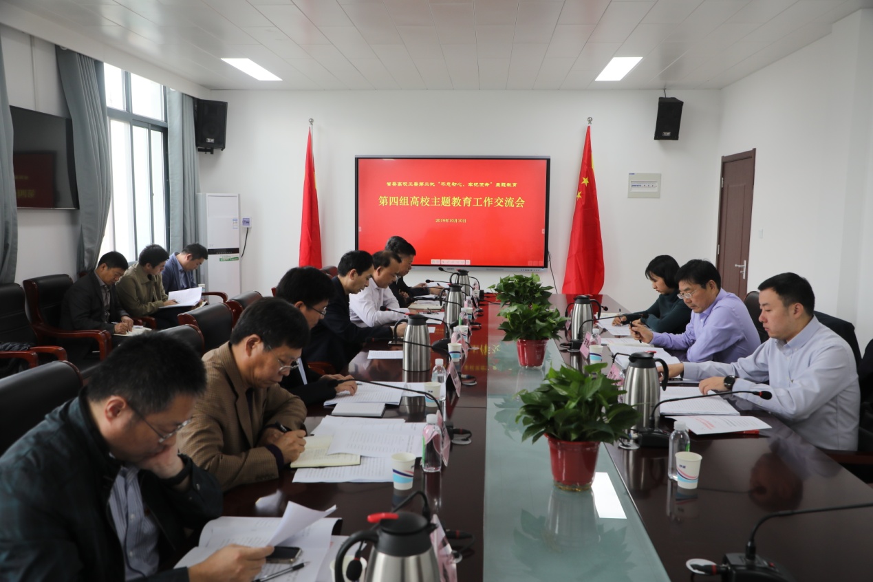 2019年10月10日上午,省委高校工委“不忘初心、牢记使命”主题教育第四巡回指导组工作交流会在我校办公楼三楼会议室举行,第四巡回指导组组长田俊廷、副组长刘禹佳、成员闫怡宁出席会议,我校党委书记秦书君、党委副书记蒋清民及其它7所高校的主题教育负责人参加了会议。指导组副组长刘禹佳主持会议。