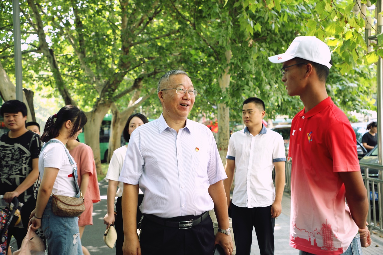 尽管已经是秋天了,天气仍然炎热,同一天中午我校党委副书记朱东方同志专程到嵩山路上慰问了正在为民族运动会提供服务的我校志愿者,为我们的志愿者送来了水。