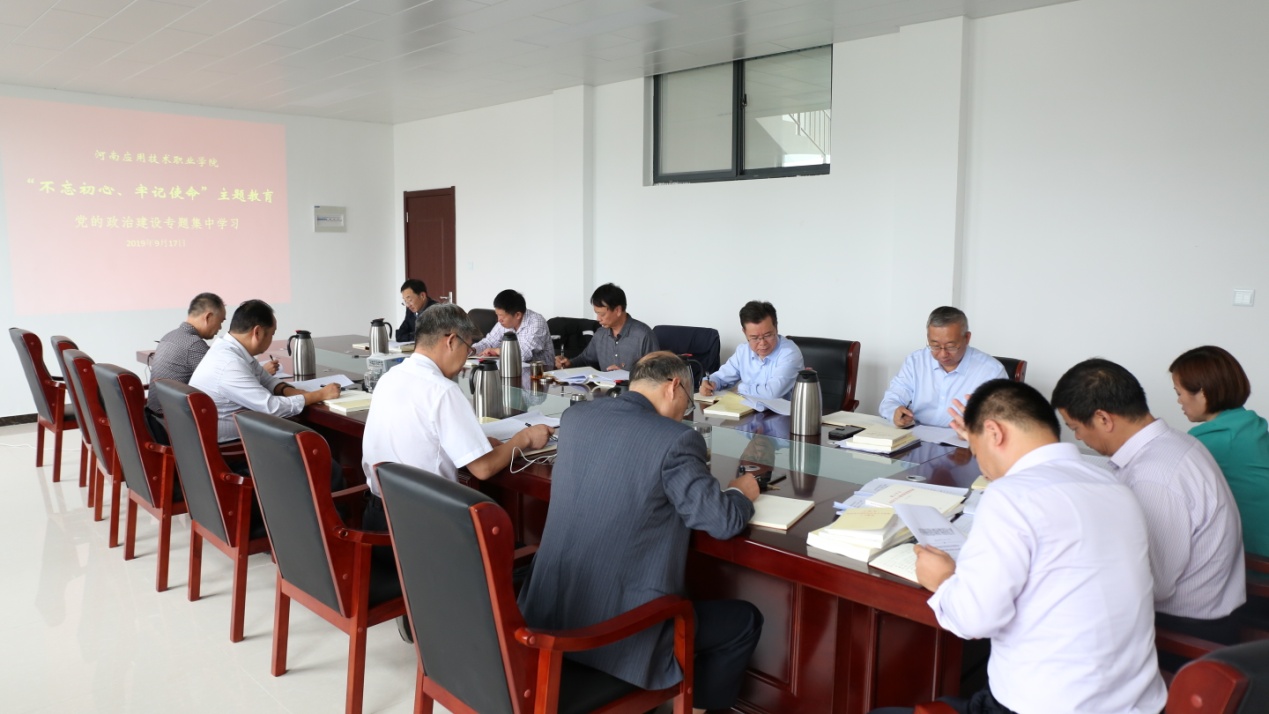 根据我校“不忘初心、牢记使命”主题教育工作安排,2019年9月17日,校党委在办公楼三楼会议室组织开展了“不忘初心、牢记使命”主题教育党的政治建设专题集中学习,全体党委委员参加学习。