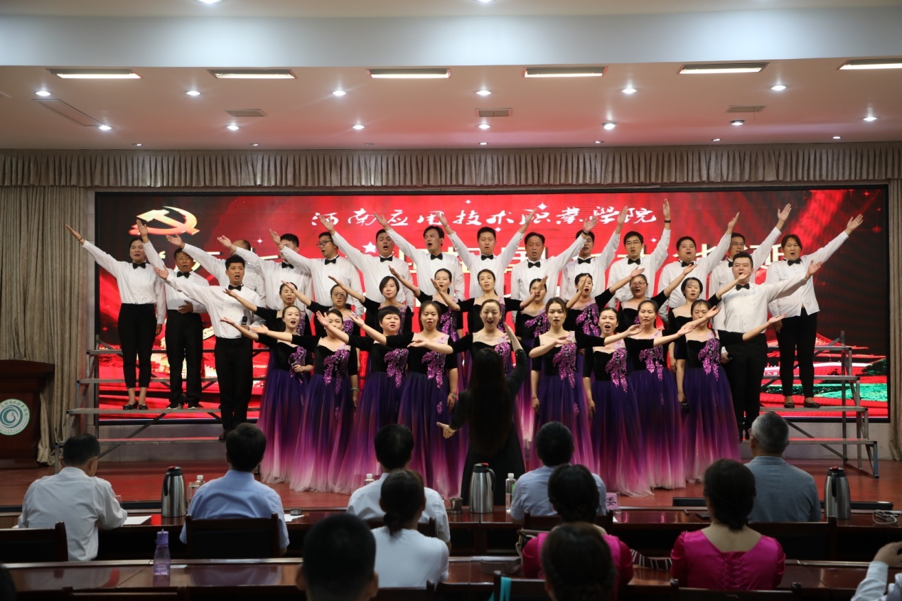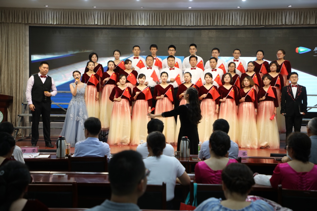 为喜迎新中国70华诞,进一步激发全体教职员工的爱党爱国热情,2019年6月28日下午,我校在实训中心二楼会议室举行了“庆七一”迎祖国70华诞合唱比赛,全体党委委员出席活动,全体教职员工参加活动。
