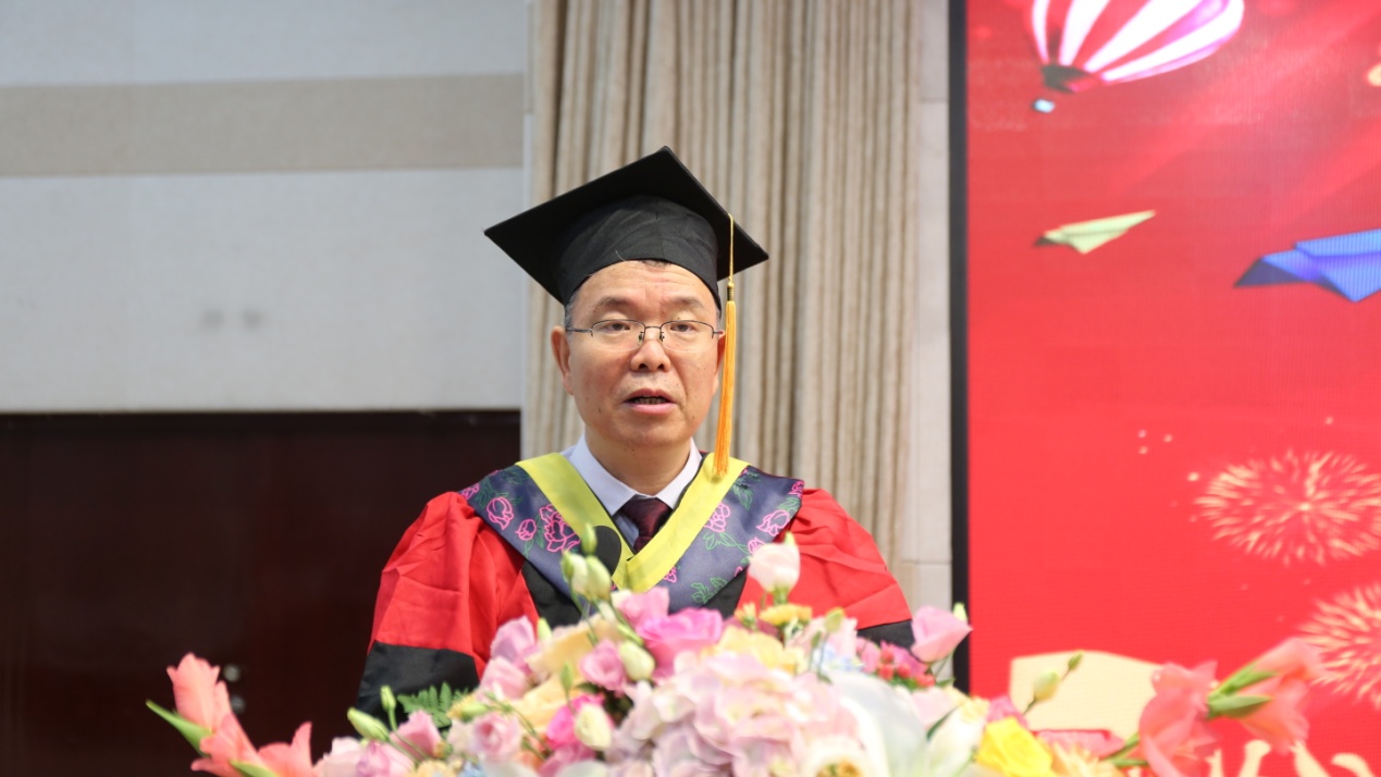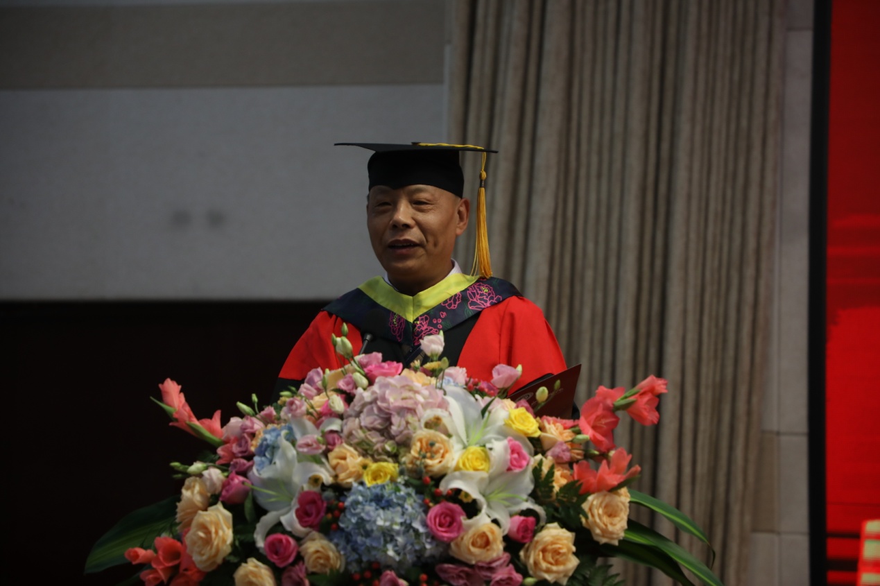 “时间之河,川流不息。”范校长指出,几年来,同学们孜孜以求,久久为功,用奋斗书写青春华章,成就最好的自己。我感到无比欣慰,同时也为你们感到骄傲和自豪!为此,他向同学们提出了三点希望,一是青年人要厚德仁爱。希望你们不断修身立德,在奋斗中锤炼品德修为,感恩父母、感恩社会和人民,感恩党和国家。二是青年人要止于至善。要有“天生我材必有用”的气概,有“走自己的路,让别人说去吧”的执著,有“善其身,济天下”的修为,有“博学之、审问之、慎思之、明辨之、笃行之”的沉淀。三是青年人要砥砺技能。希望你们珍惜韶华、不负青春、刻苦学习,锤炼过硬本领,掌握一技之长,开阔思维视野,以精湛的技术赢得社会的认可。