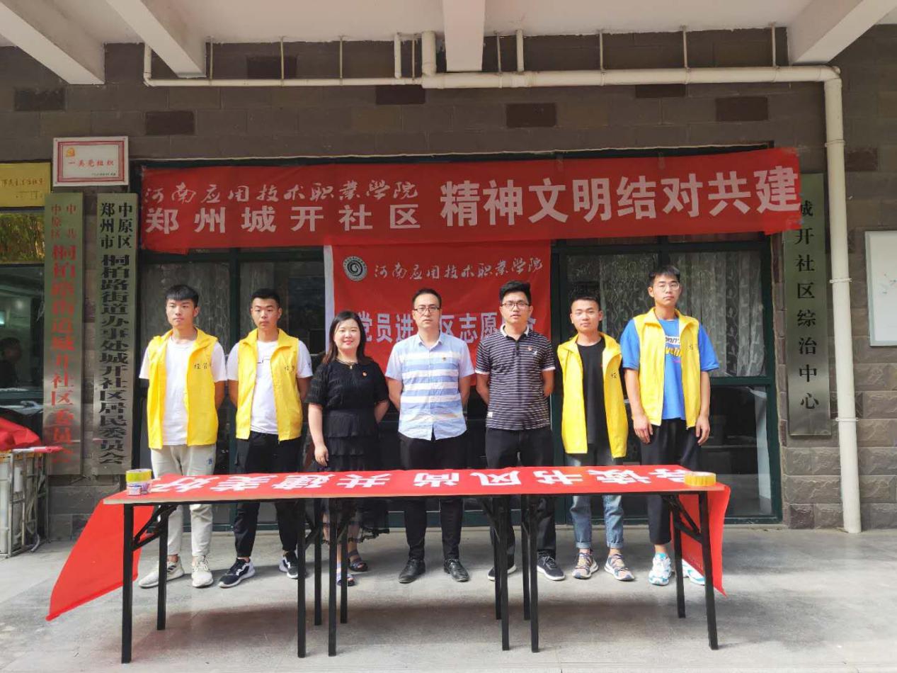 为充分发挥我校党员干部的先锋模范作用,提升社区居民防范金融诈骗意识,2019年5月27日下午,我校经济管理学院党员志愿者们来到郑州城开社区,开展了以“防范金融风险共建和谐社会”为主题的社区精神文明结对共建活动。