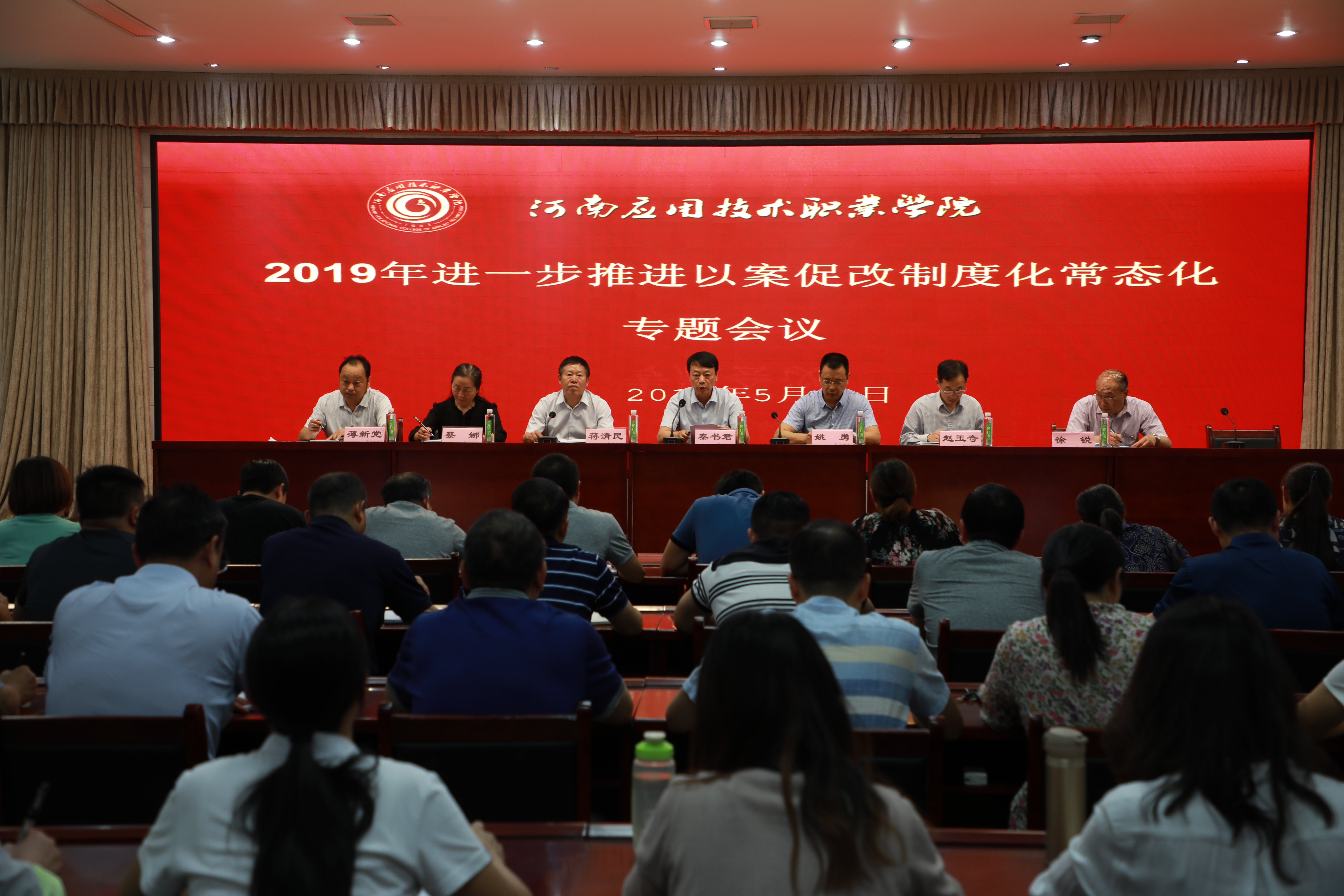 2019年5月28日下午,我校召开进一步推进以案促改制度化常态化专题会议,学校党委委员、纪委委员、中层干部、各党总支纪检委员及相关部门全体人员参加会议。