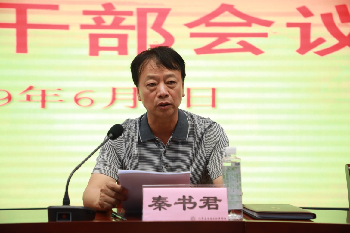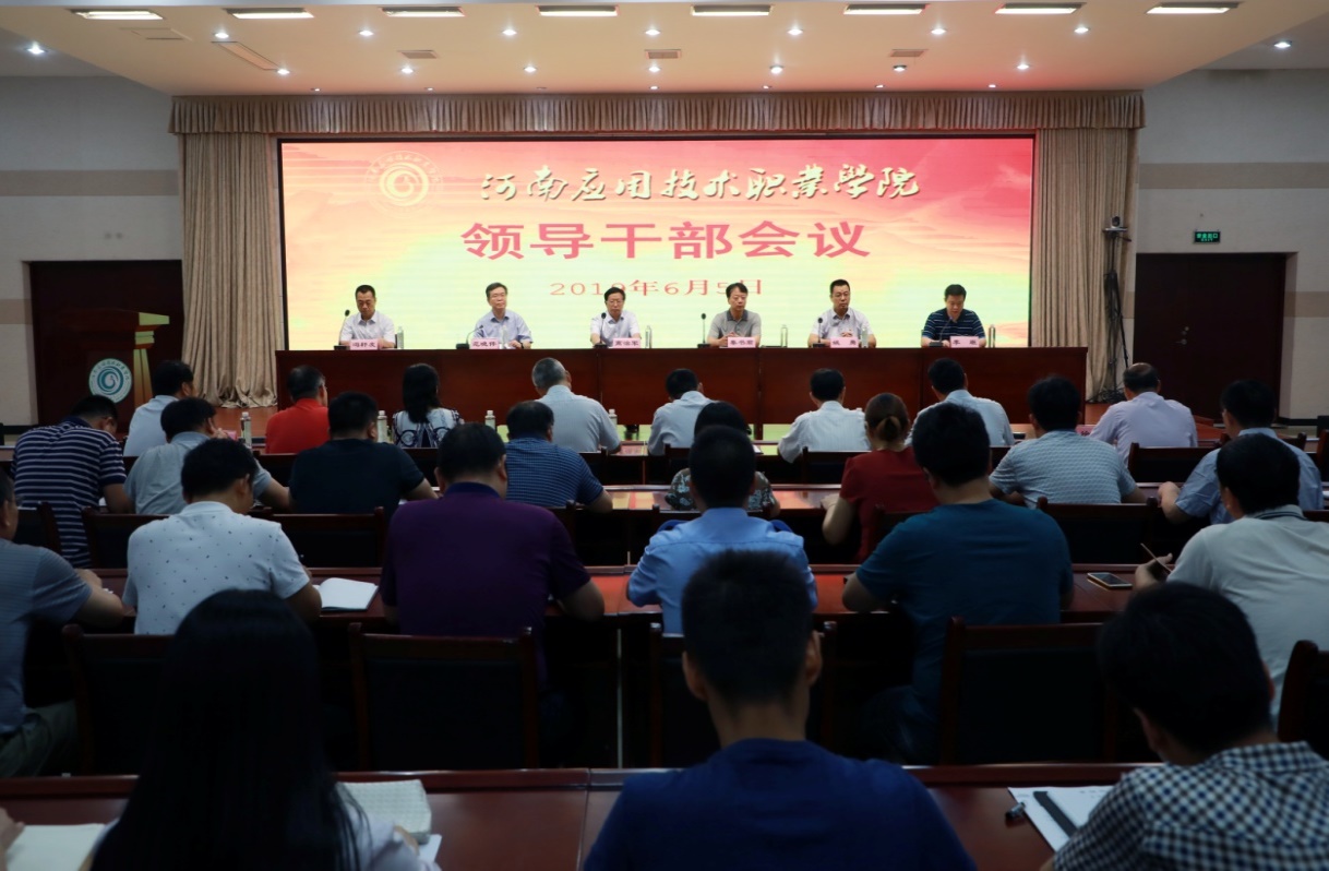 2019年6月5日上午,我校在实训中心二楼会议室召开干部大会,宣布中共河南省委关于我校主要领导职务调整的决定,河南省委高校工委专职委员高治军出席会议并作重要讲话。