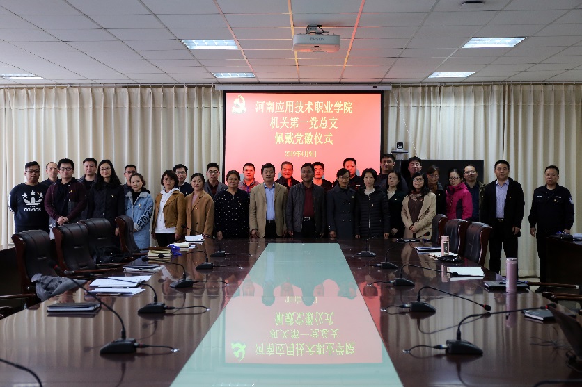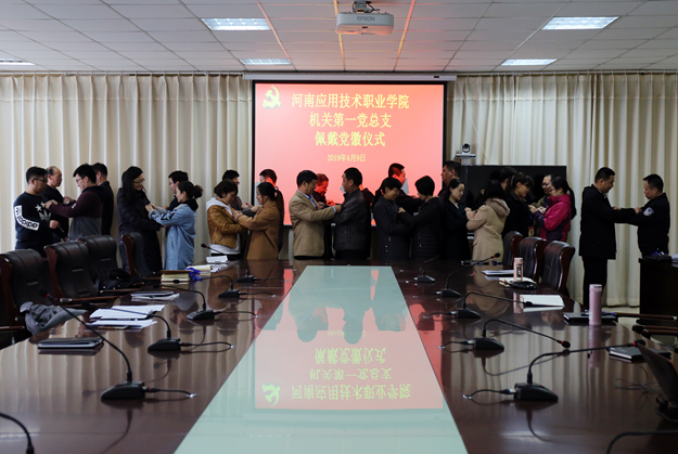 2019年4月9日下午,机关第一党总支在实训中心四楼会议室举行了“戴党徽、亮身份”佩戴党员徽章仪式。总支全体党员参加了仪式。